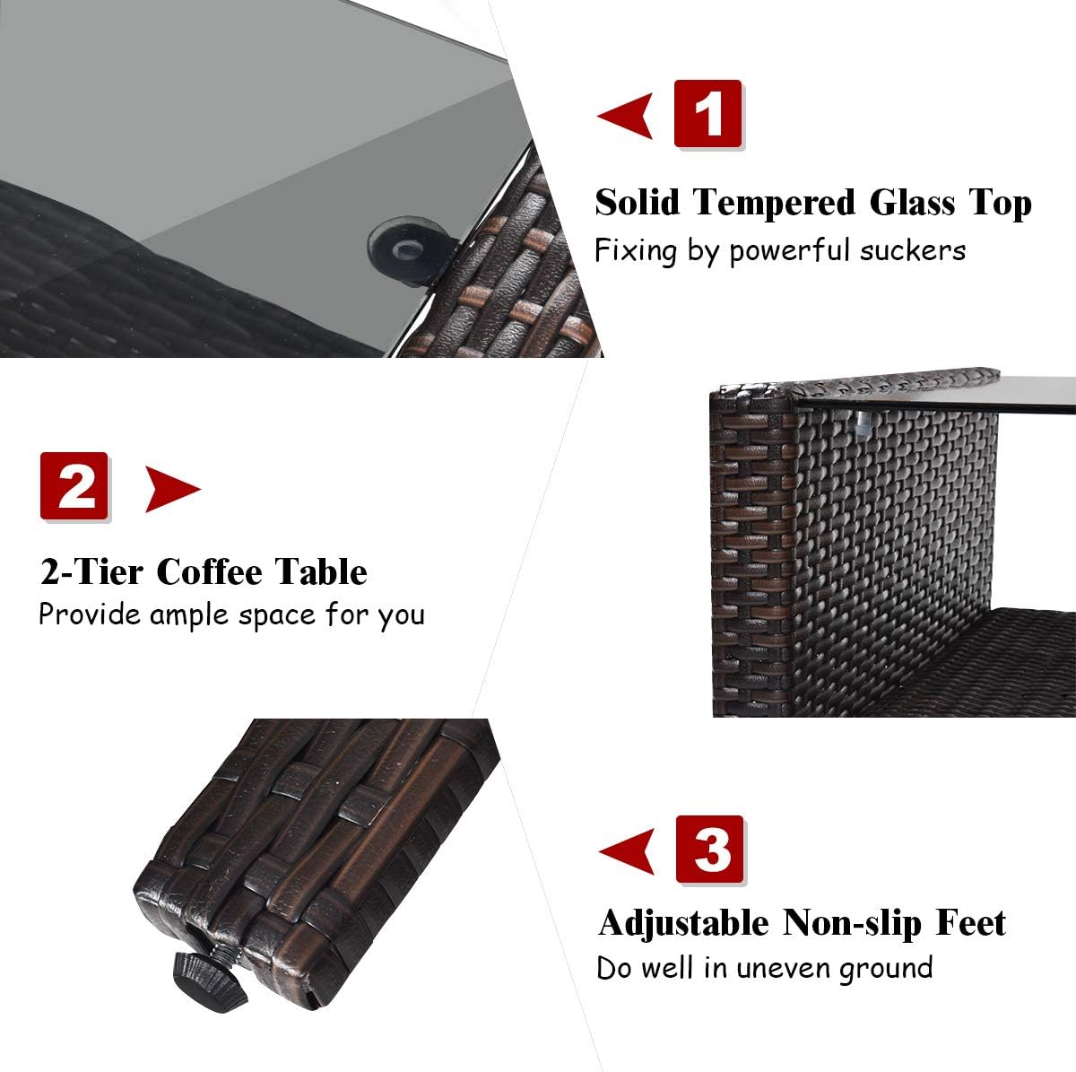4 Piece Outdoor Patio Furniture Set with Glass Coffee Table