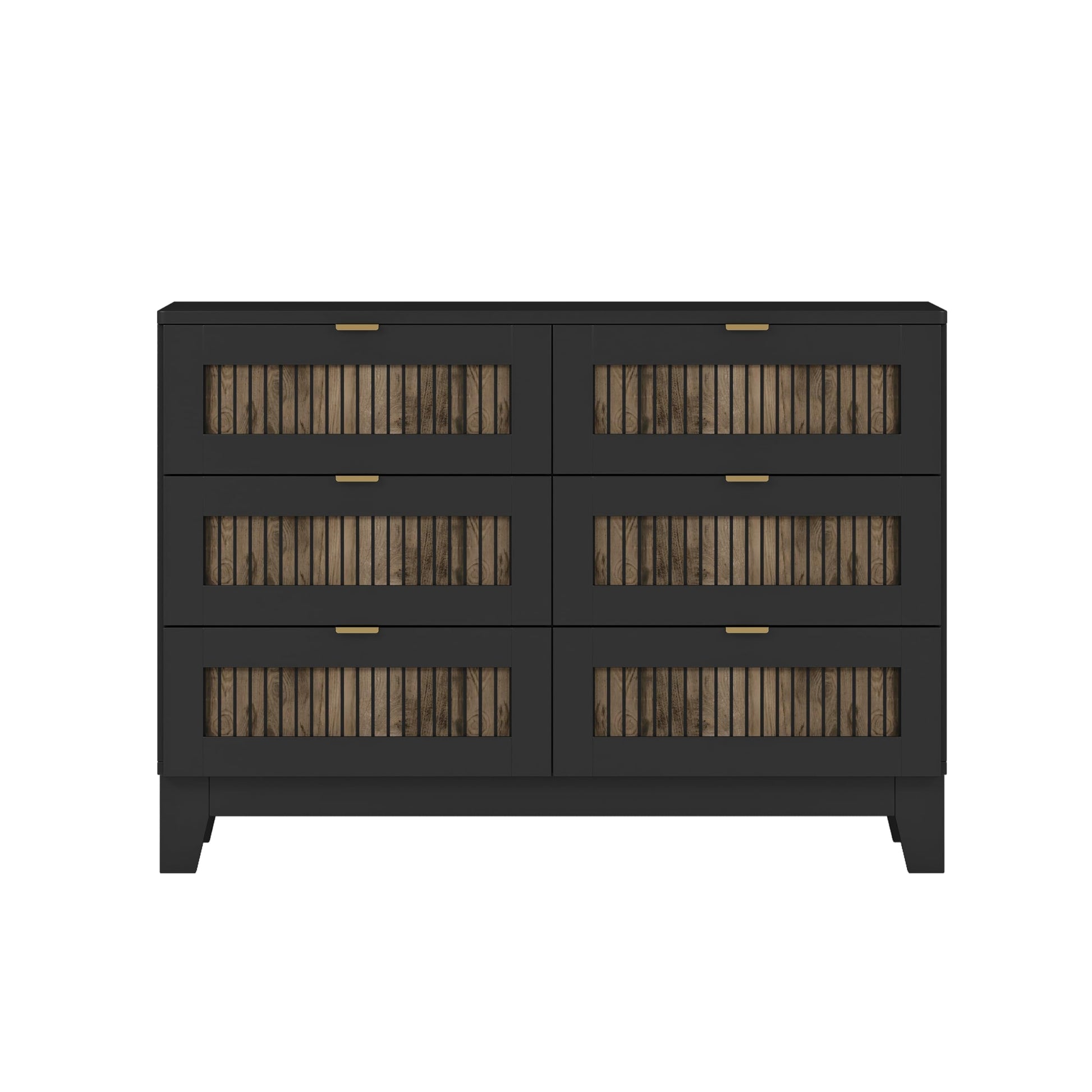 - 6-drawer dresser with durable metal handles for ample clothing storage