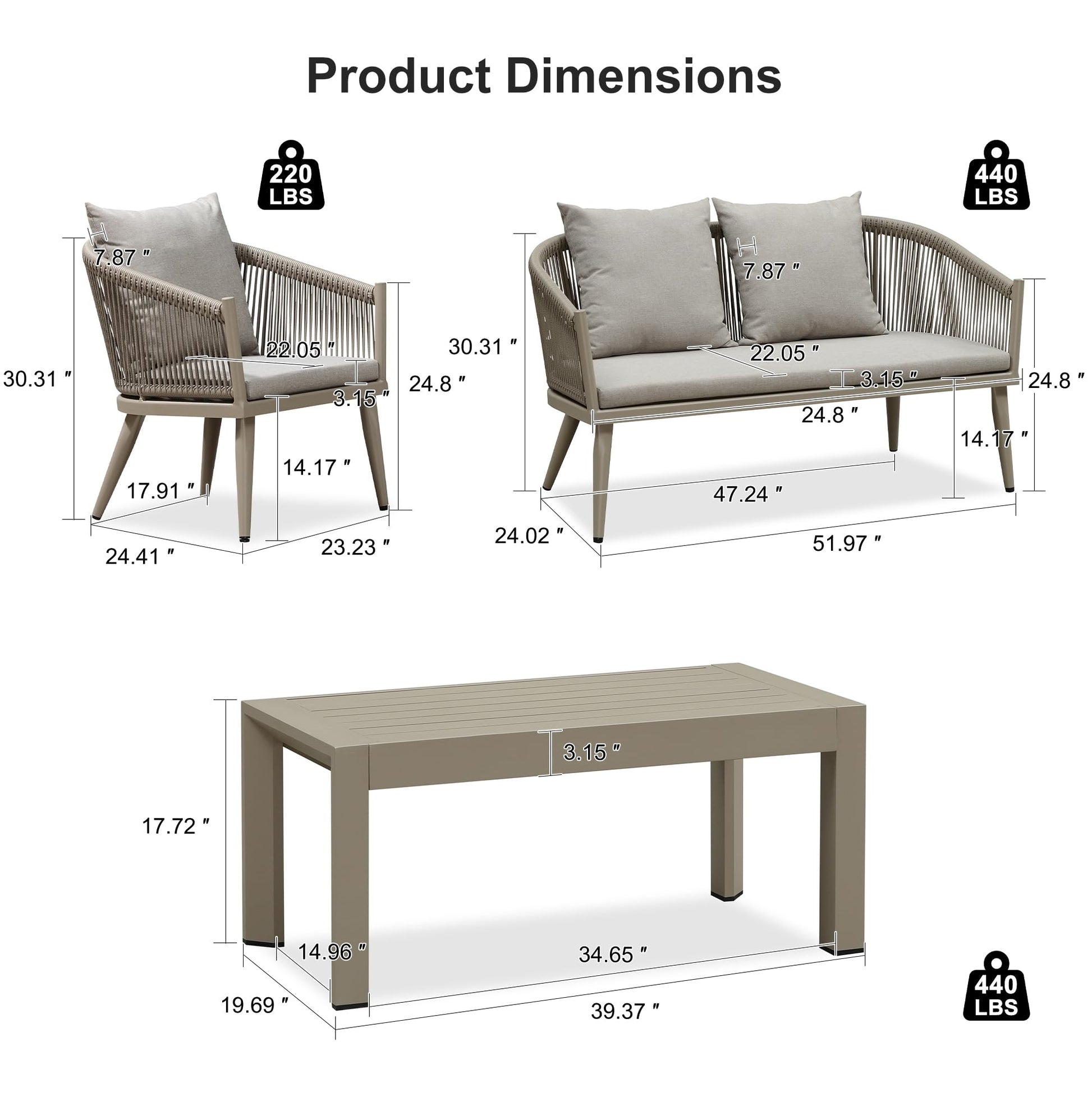 Transform your outdoor space with this complete 4-piece patio furniture set. Designed for comfort and durability, this conversation set is perfect for entertaining guests or relaxing with family on your porch, backyard, garden, or balcony.