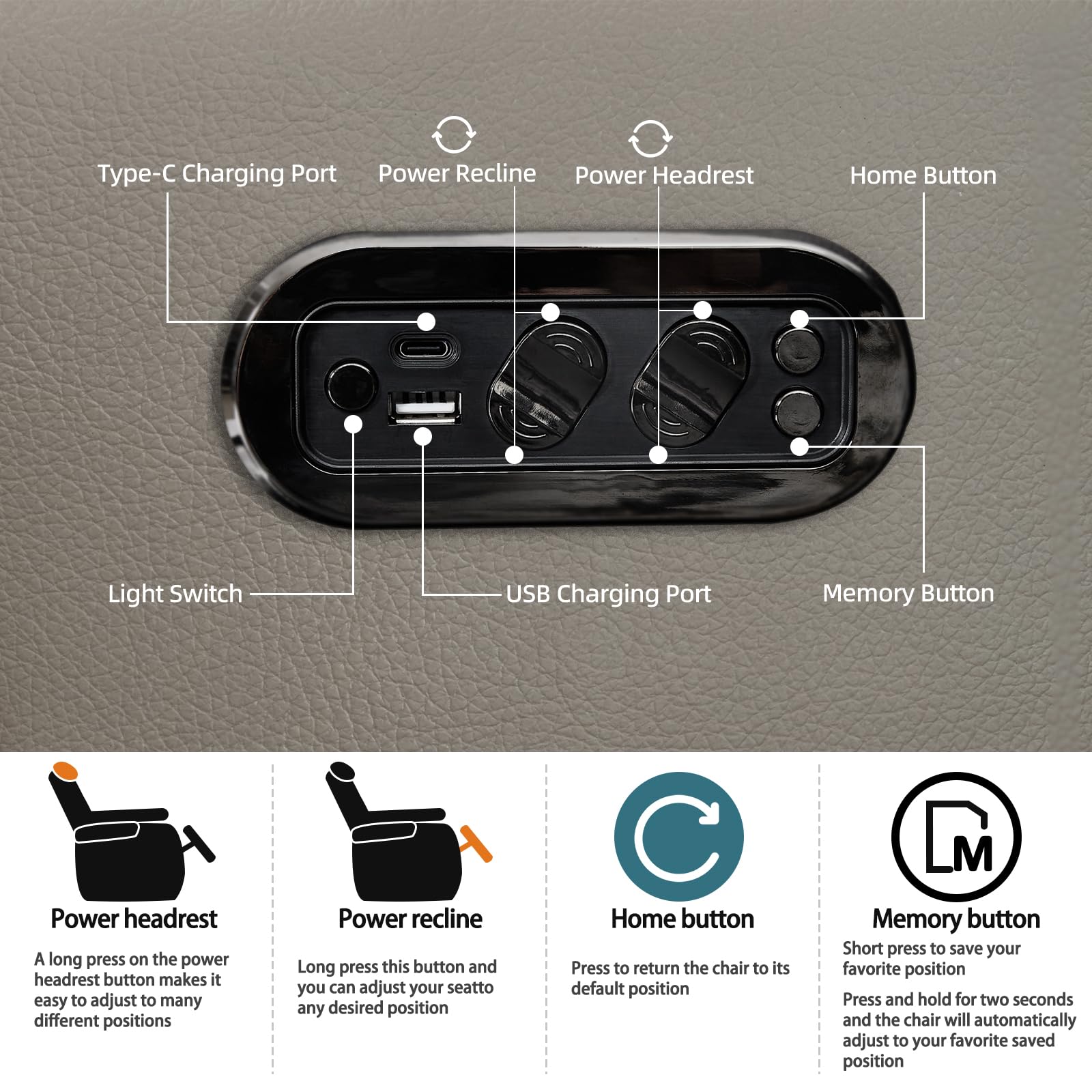 - Dual power electric reclining system with adjustable headrest and footrest