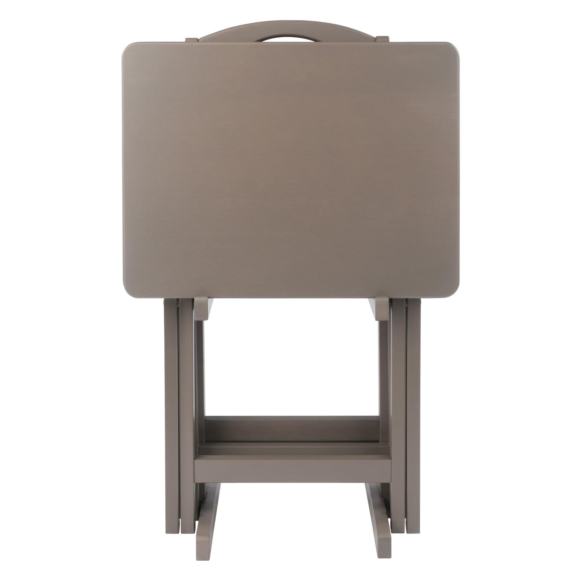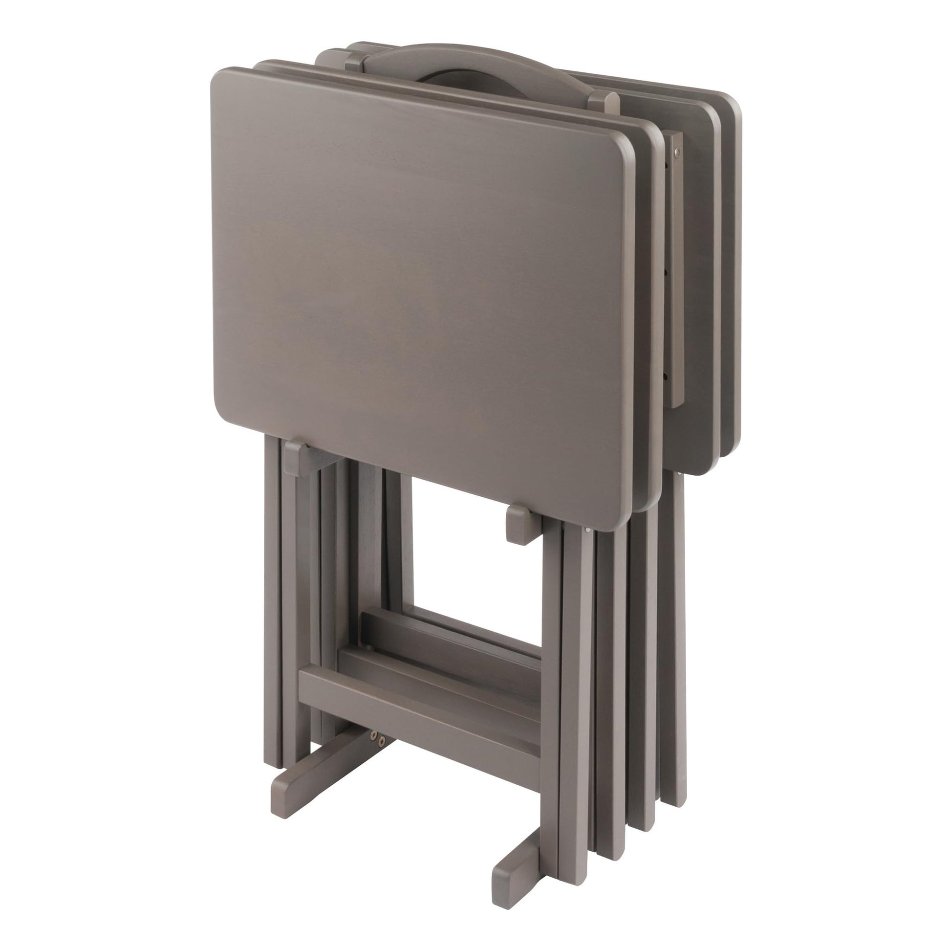 This versatile snack table set combines functionality with elegant design, perfect for entertaining guests or enjoying meals in any room. The set includes four individual tables and a convenient storage stand that keeps them organized when not in use.
