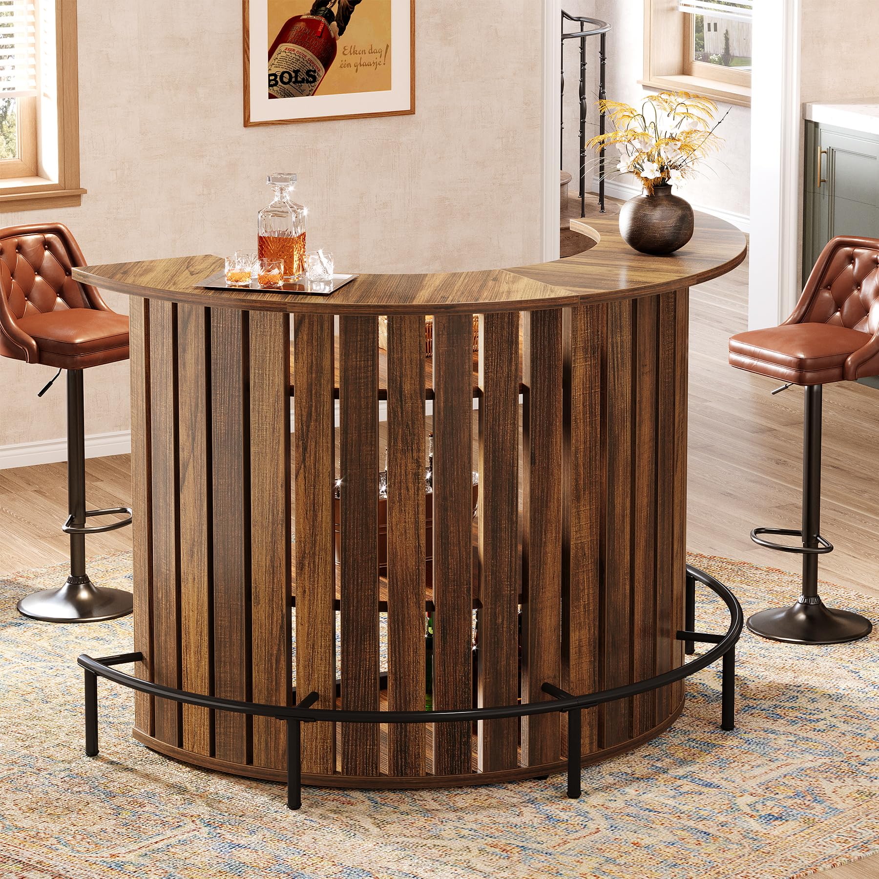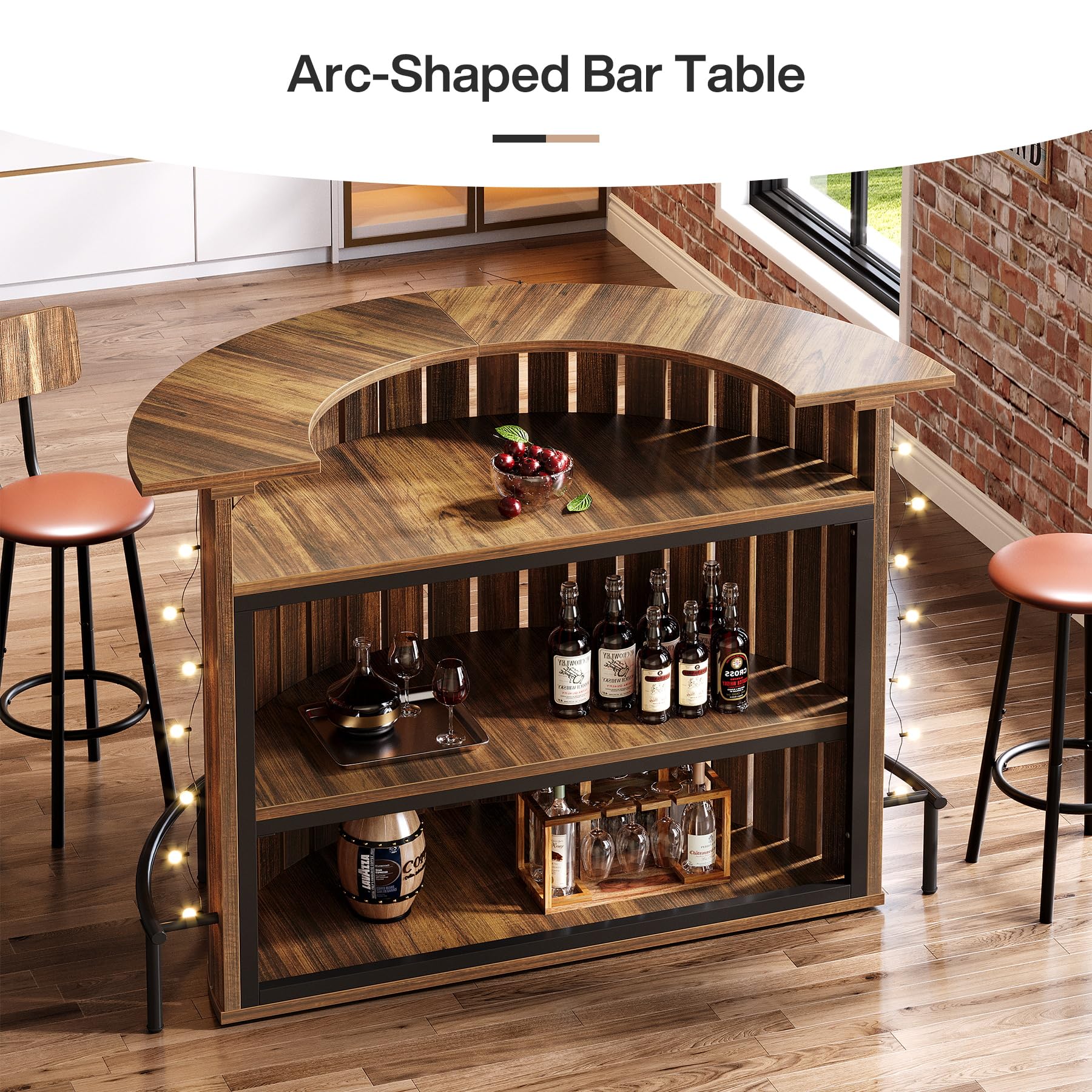 4-Tier Bar Table with Footrest - Arc-Shaped Wine Cabinet