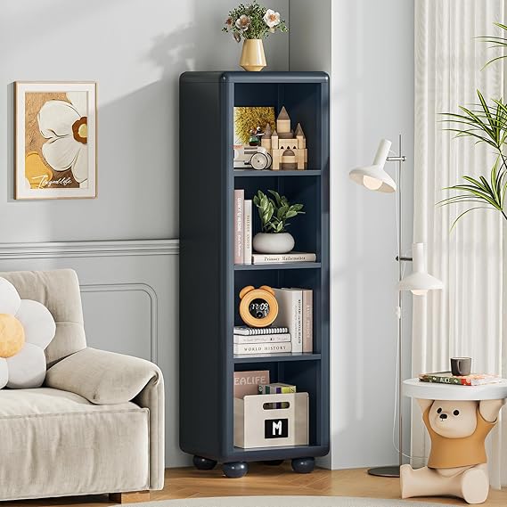 - Space-Saving Design: Compact vertical storage with 4 open compartments perfect for books, toys, crafts, and decorative items