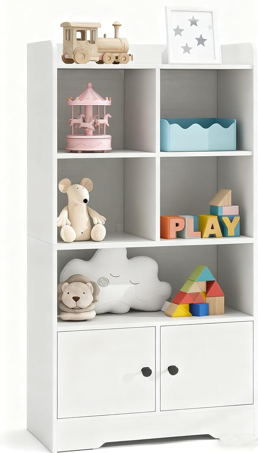 - Spacious Storage Solutions: Wide top shelf with raised edges, 5 open compartments, and a 2-door cabinet provide ample space for toys, books, clothes, plants, documents, and decorative items