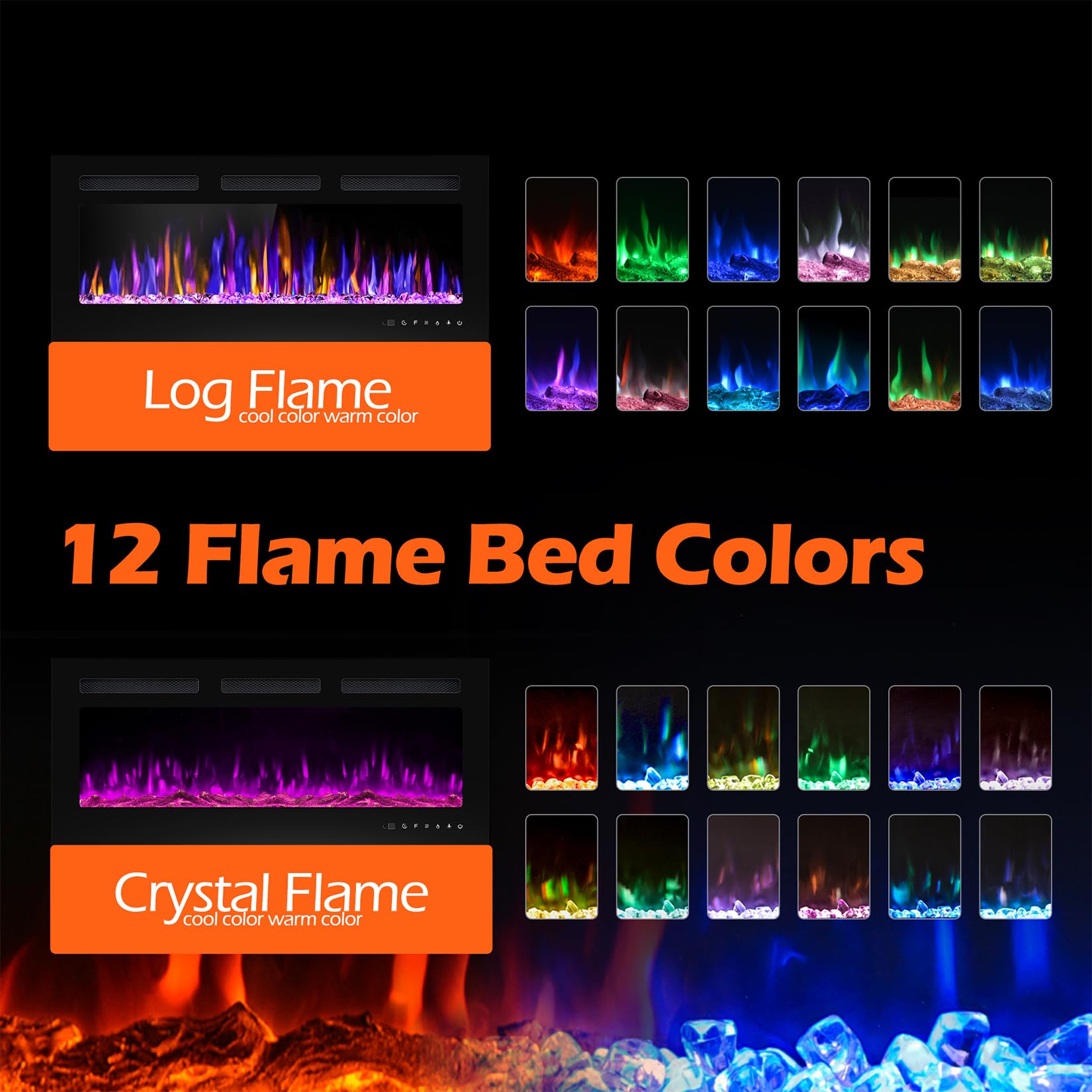 Transform your space with this ultra-thin electric fireplace featuring adjustable flame colors, brightness control, and dual heating modes. Perfect for modern homes seeking both ambiance and warmth.