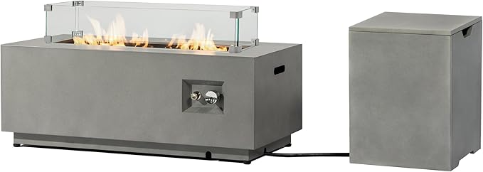 Transform your outdoor space with this 42-inch rectangular propane fire pit table, delivering 50,000 BTU of warmth and ambiance for your patio gatherings. This outdoor fireplace combines functionality with contemporary design, creating a stunning focal point for entertaining or relaxing.