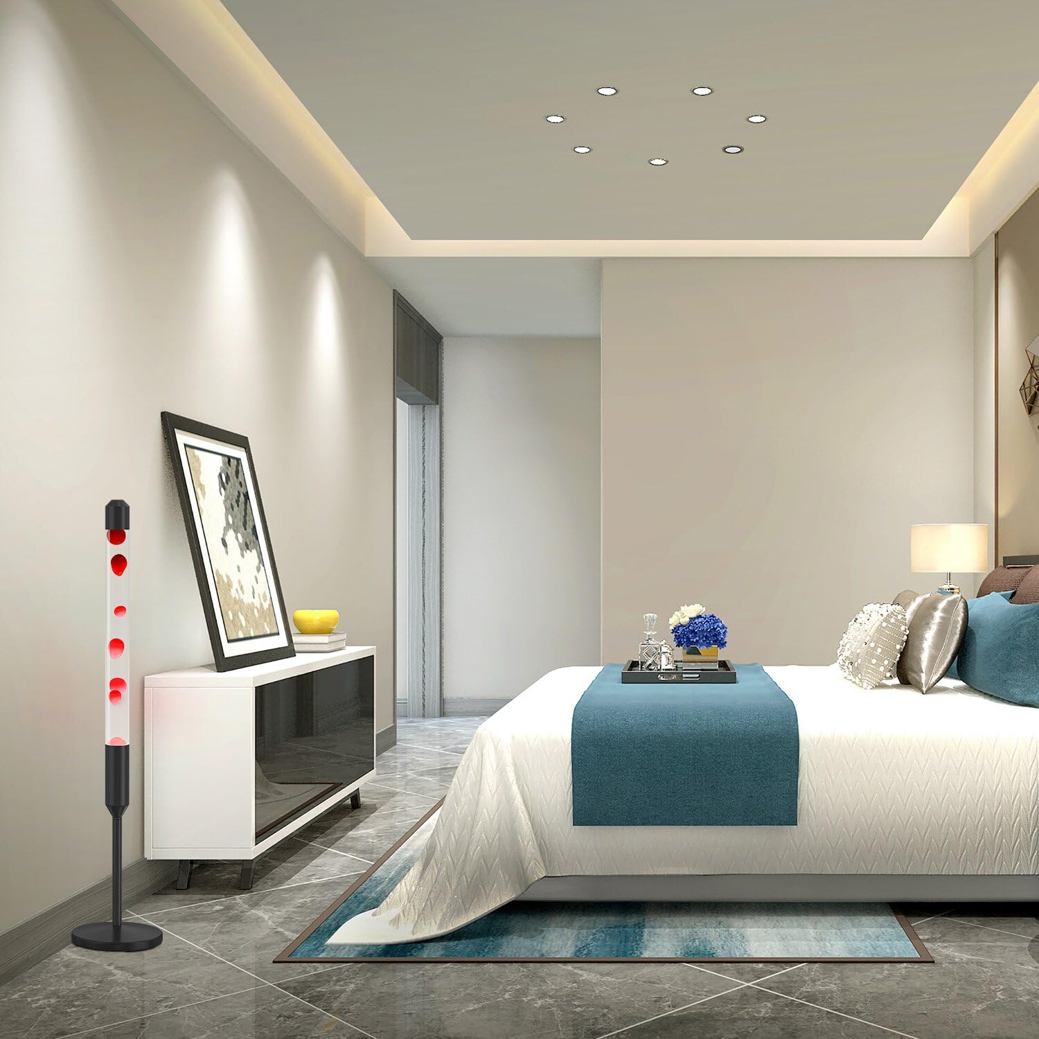 Transform any space into a mesmerizing wonderland with this giant floor-standing liquid motion lamp. Standing at an impressive 47.5 inches tall, this magma lamp creates a unique visual experience with its slow, rhythmic wax flows that provide both ambient lighting and endless fascination.