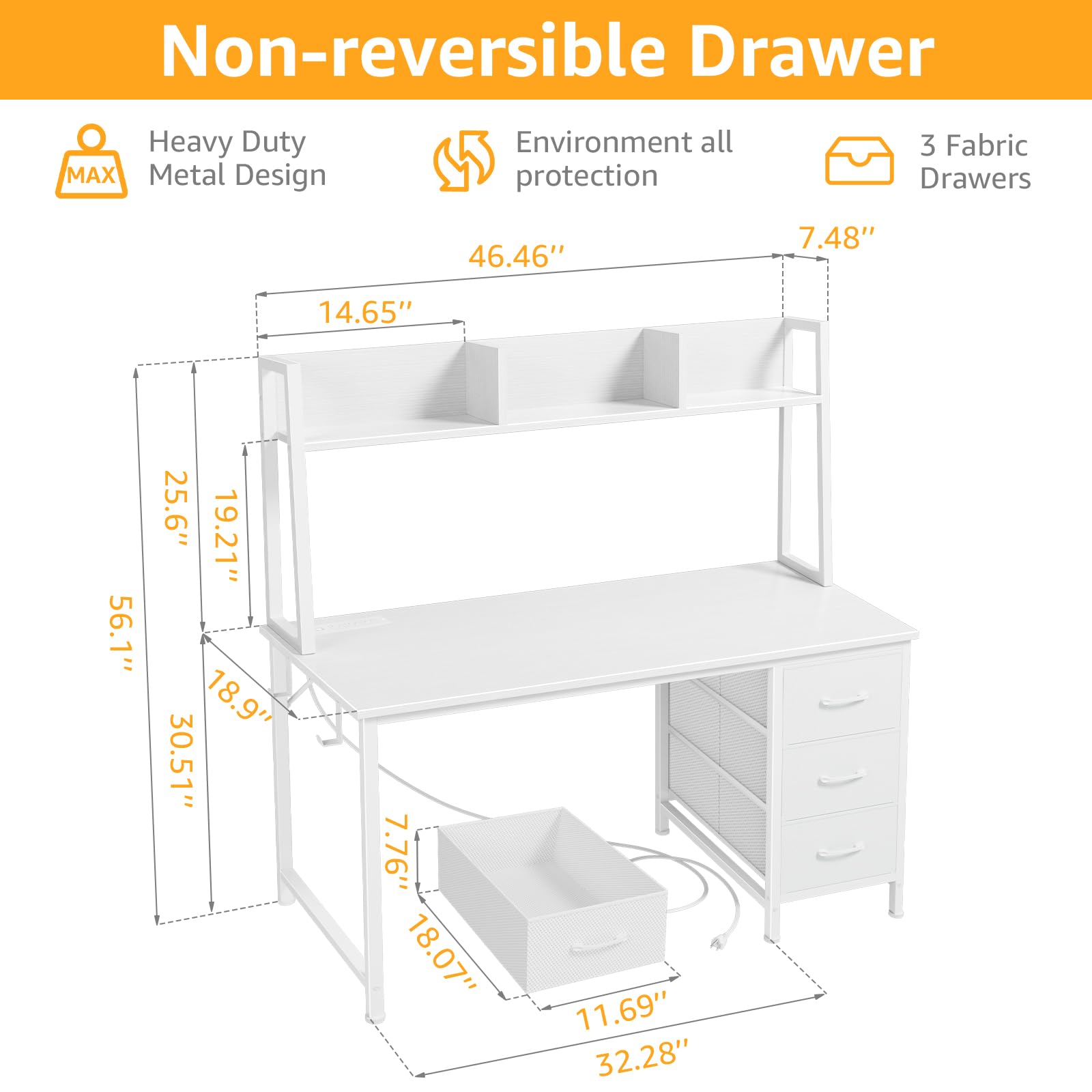 47 Inch Computer Desk with Hutch and Storage Drawers