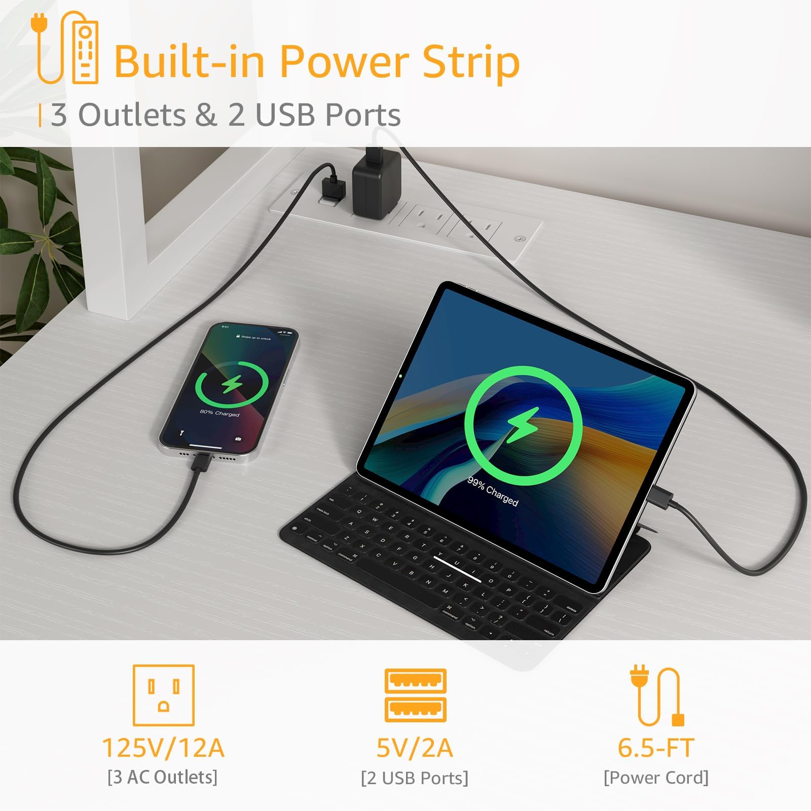 - Built-in power outlets with 3 AC outlets and 2 USB ports for convenient device charging