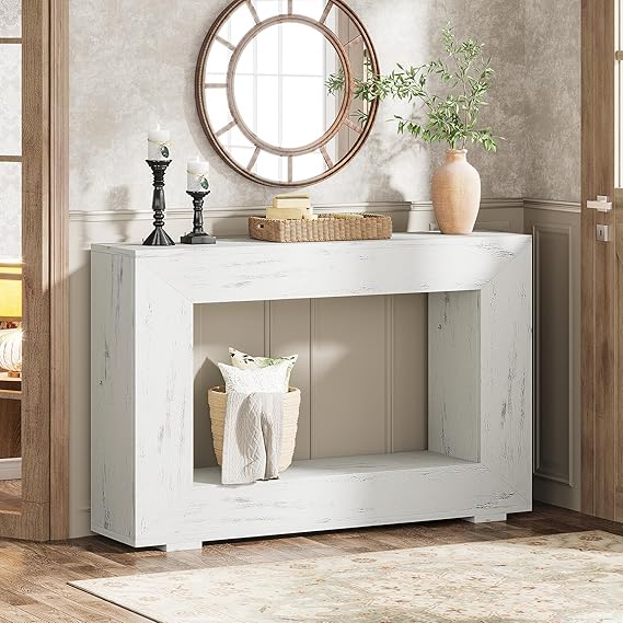 This farmhouse console table combines rustic charm with industrial design, perfect for your entryway, living room, or hallway. The 47-inch length provides ample surface space while the storage features keep your space organized and clutter-free.