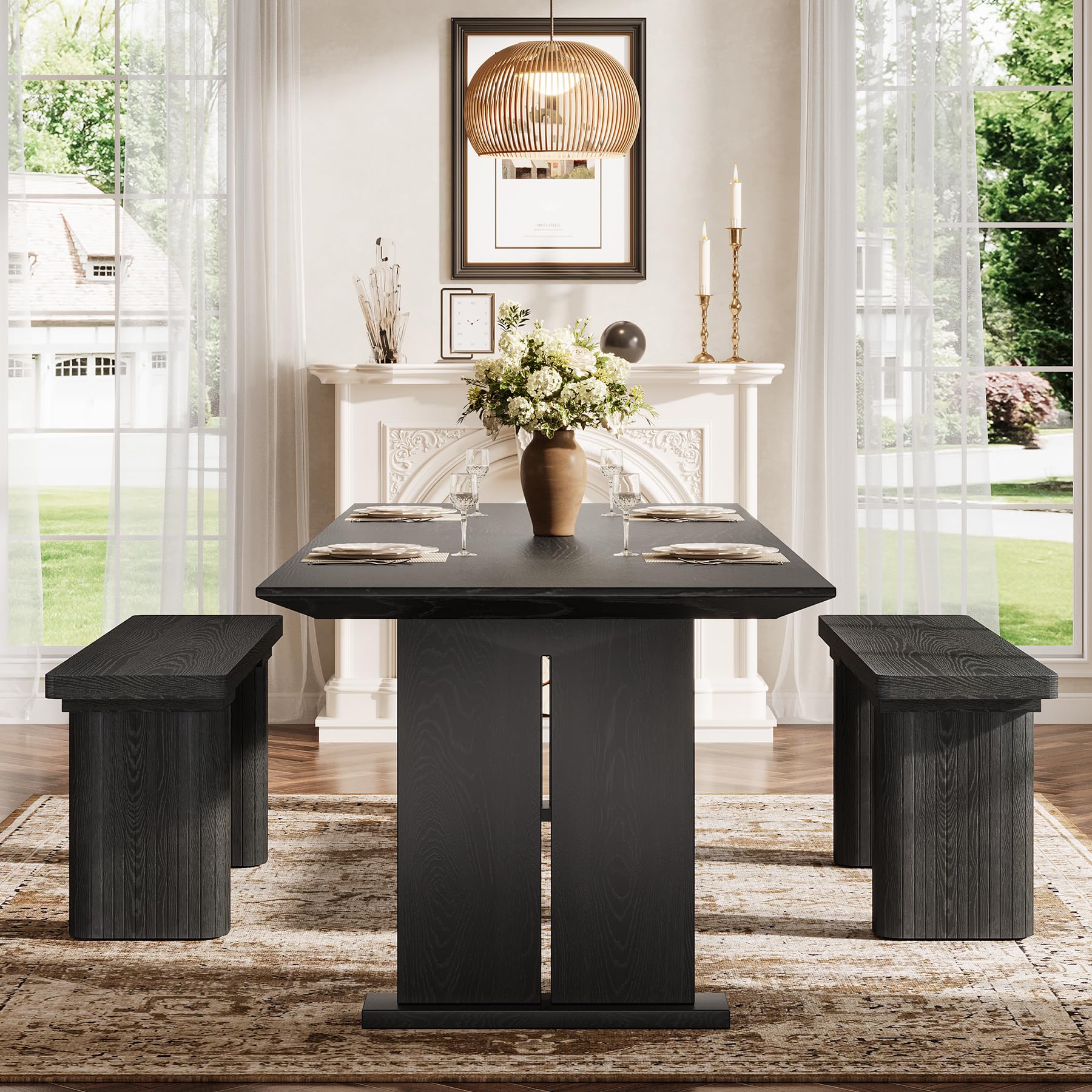 Featuring a sleek black wood grain and smooth curved edges, this black dining bench blends modern simplicity with timeless charm. The rounded corners enhance both style and safety for worry-free daily use.