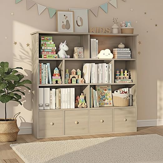 Transform your child's playroom or bedroom with this versatile toy storage organizer and bookcase. Designed to keep toys, books, and essentials neatly organized while adding a modern touch to any space.
