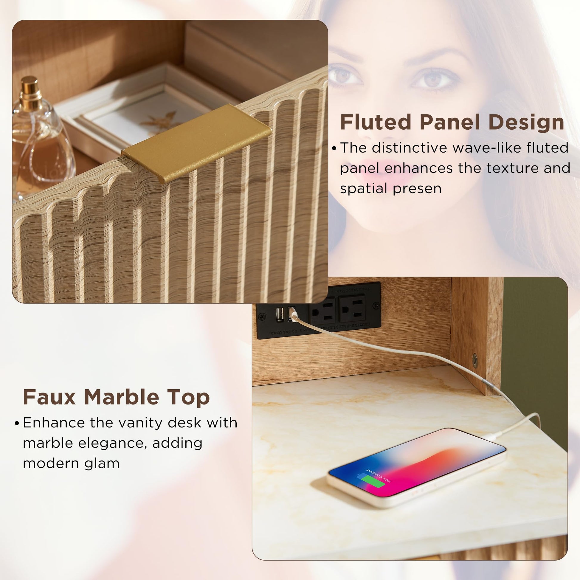 48 Inch Fluted Makeup Vanity Desk with Mirror and Lights