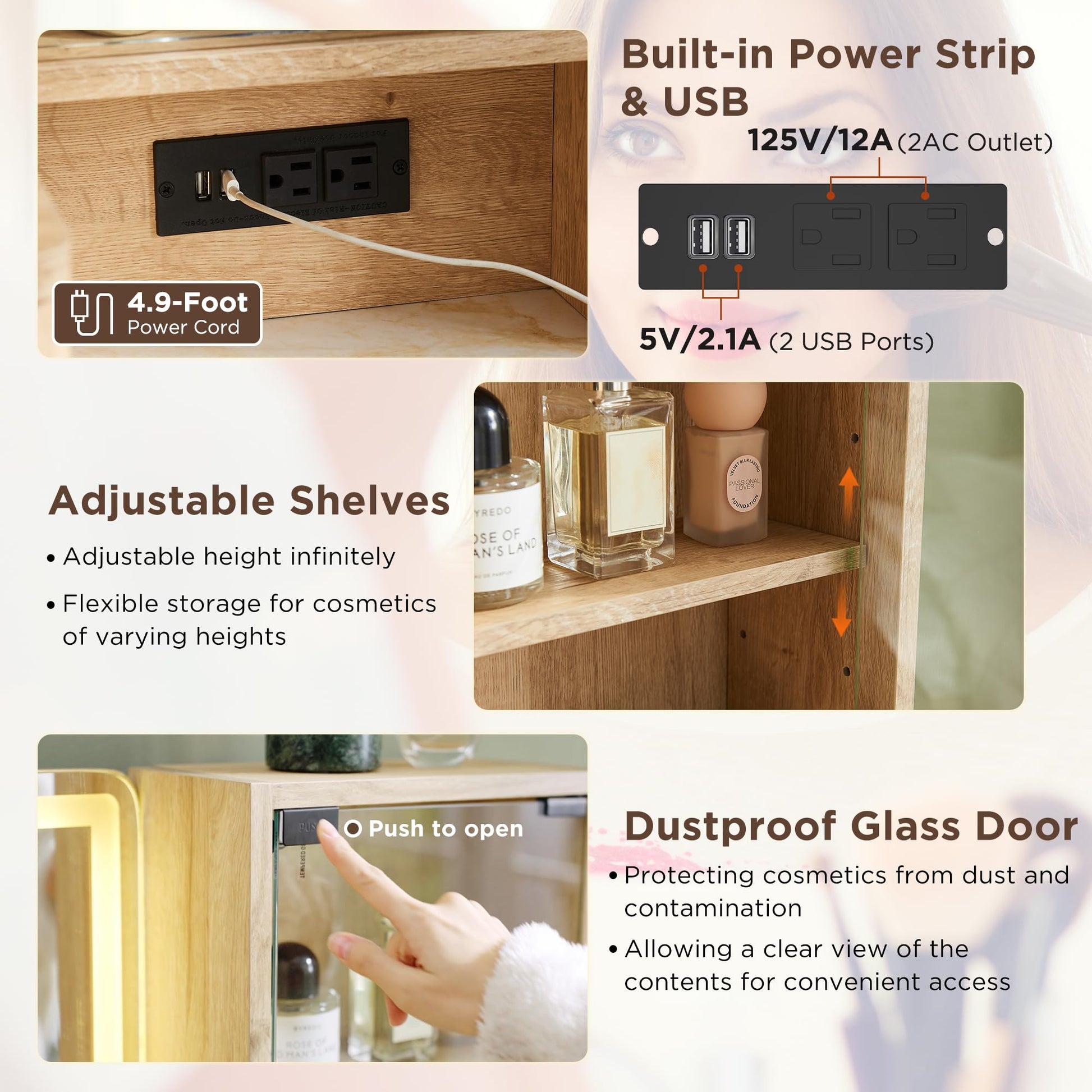This vanity desk is ideal for makeup enthusiasts, beauty professionals, or anyone seeking an organized and stylish grooming station. The combination of ample storage, integrated lighting, and charging capabilities makes your daily beauty routine effortless and enjoyable.