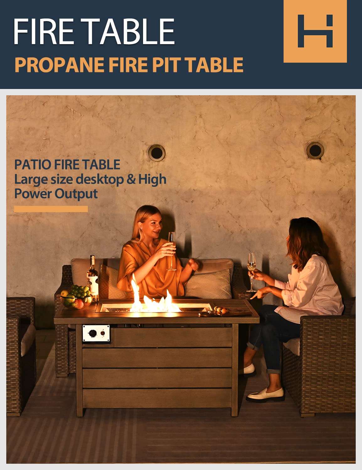 48-Inch Propane Fire Pit Table with Aluminum Slats