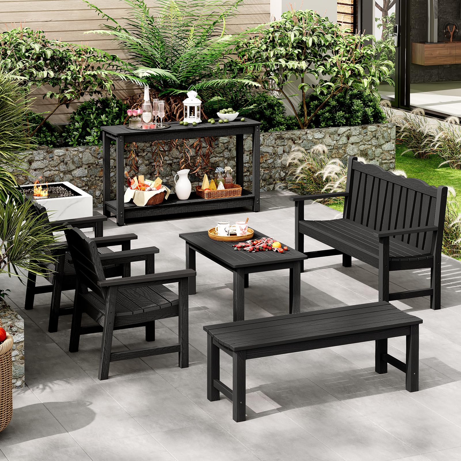 This weather-resistant outdoor console table combines durability with modern design, perfect for patios, gardens, and entryways. Built with premium HIPS poly lumber and 304 stainless steel screws, this versatile piece withstands all weather conditions without fading, rusting, or molding.