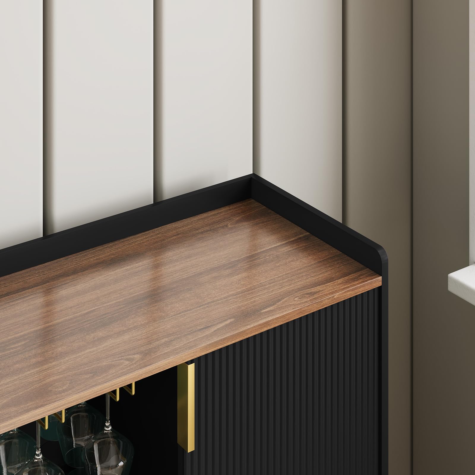 Elevate your space with a wine cabinet that marries rustic charm with modern function. This elegant bar cabinet showcases up to 12 bottles and hangs 9 glasses under the three-tier rack, while adjustable shelves customize to your collection. The generous countertop effortlessly hosts your coffee machine or other appliances—turning every corner into a cozy, organized bar nook.