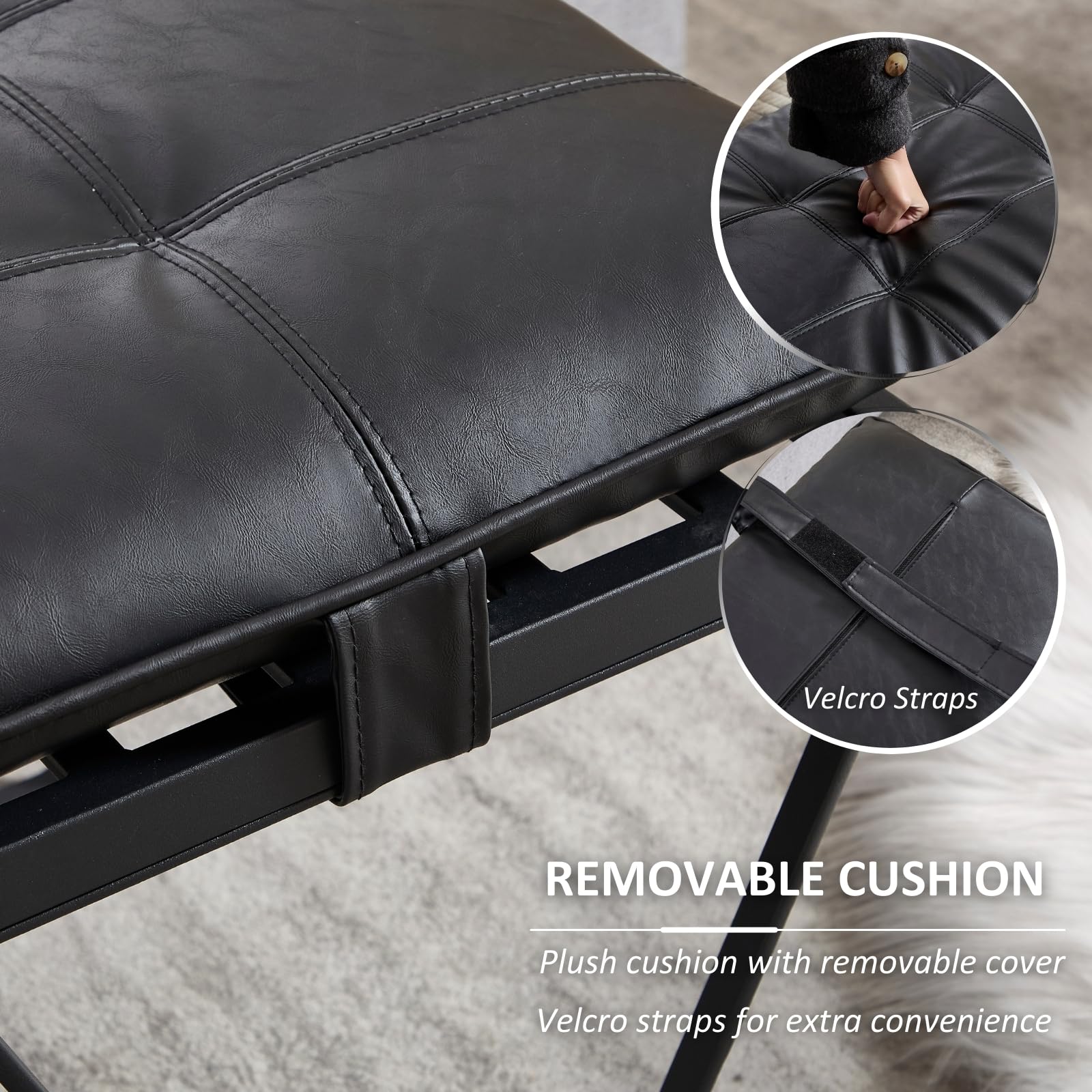 - Removable Cushion: Dual functionality with a removable PU leather cushion secured by Velcro - keep it on for soft, cozy seating or remove it for a firmer seat and personalized styling