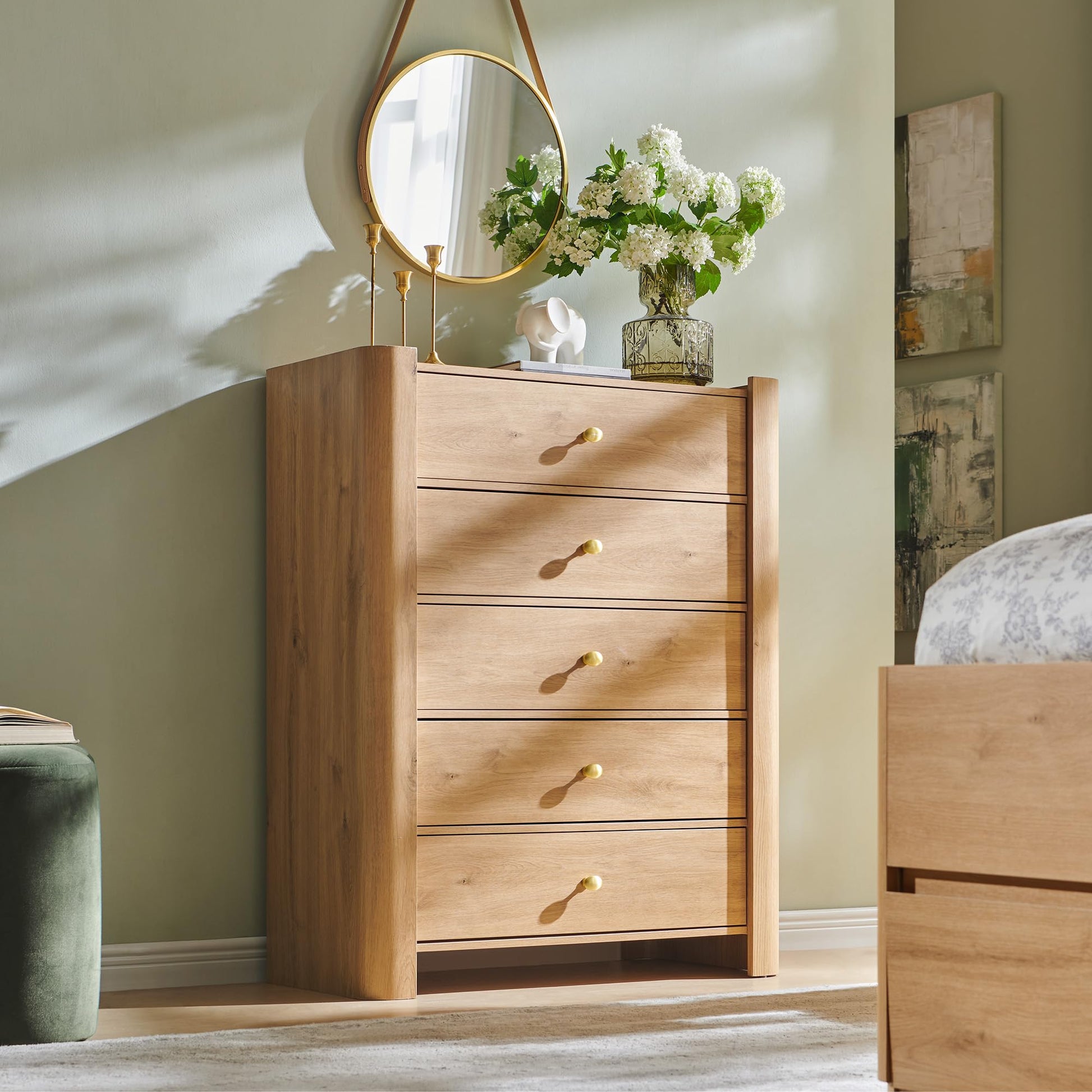 5 Drawer Dresser with Curved Profile Design