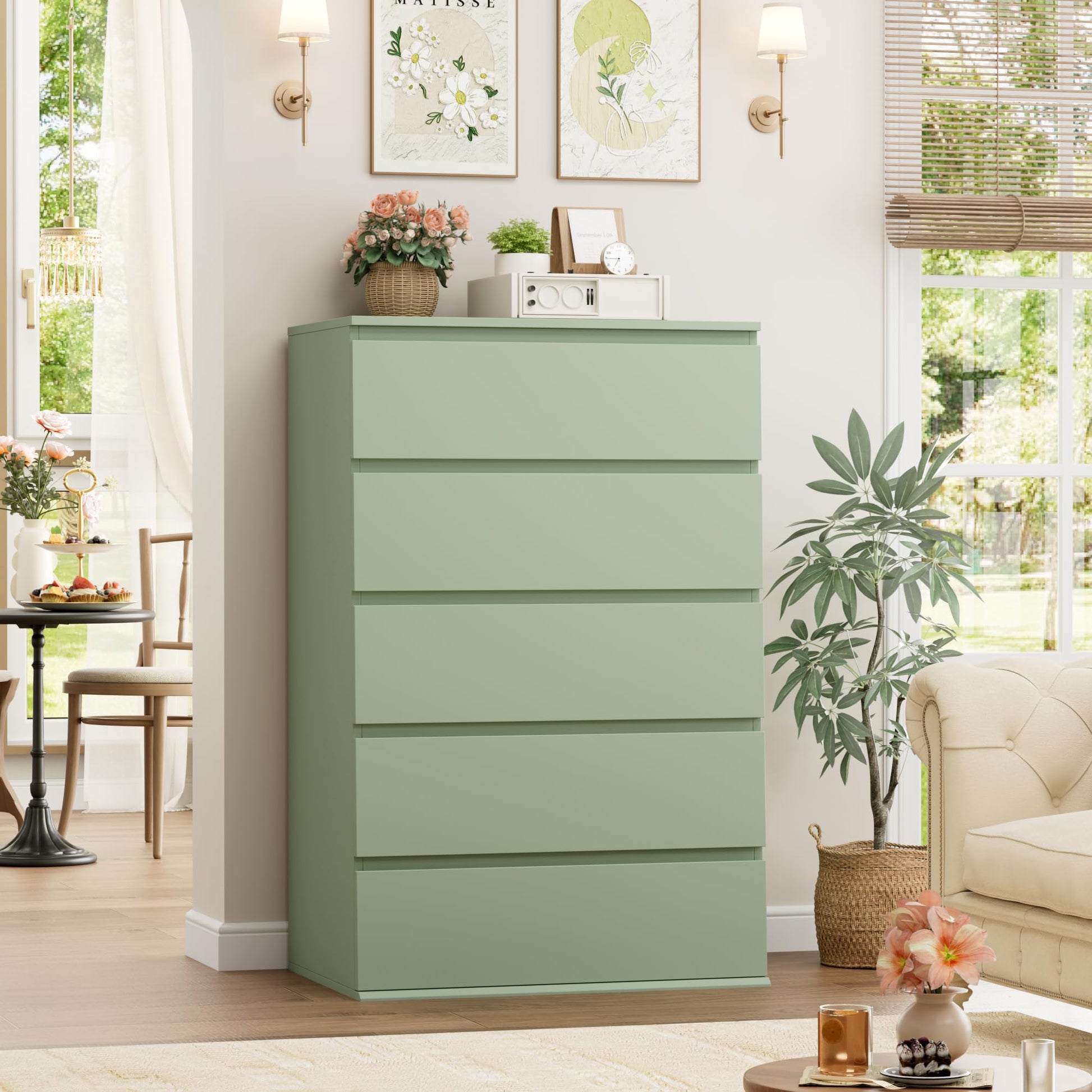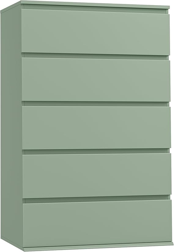 This modern 5-drawer dresser combines functionality with contemporary design, offering ample storage space for bedroom, living room, or office organization. The tall chest of drawers features a sleek profile and durable construction, making it an ideal storage solution for any home.