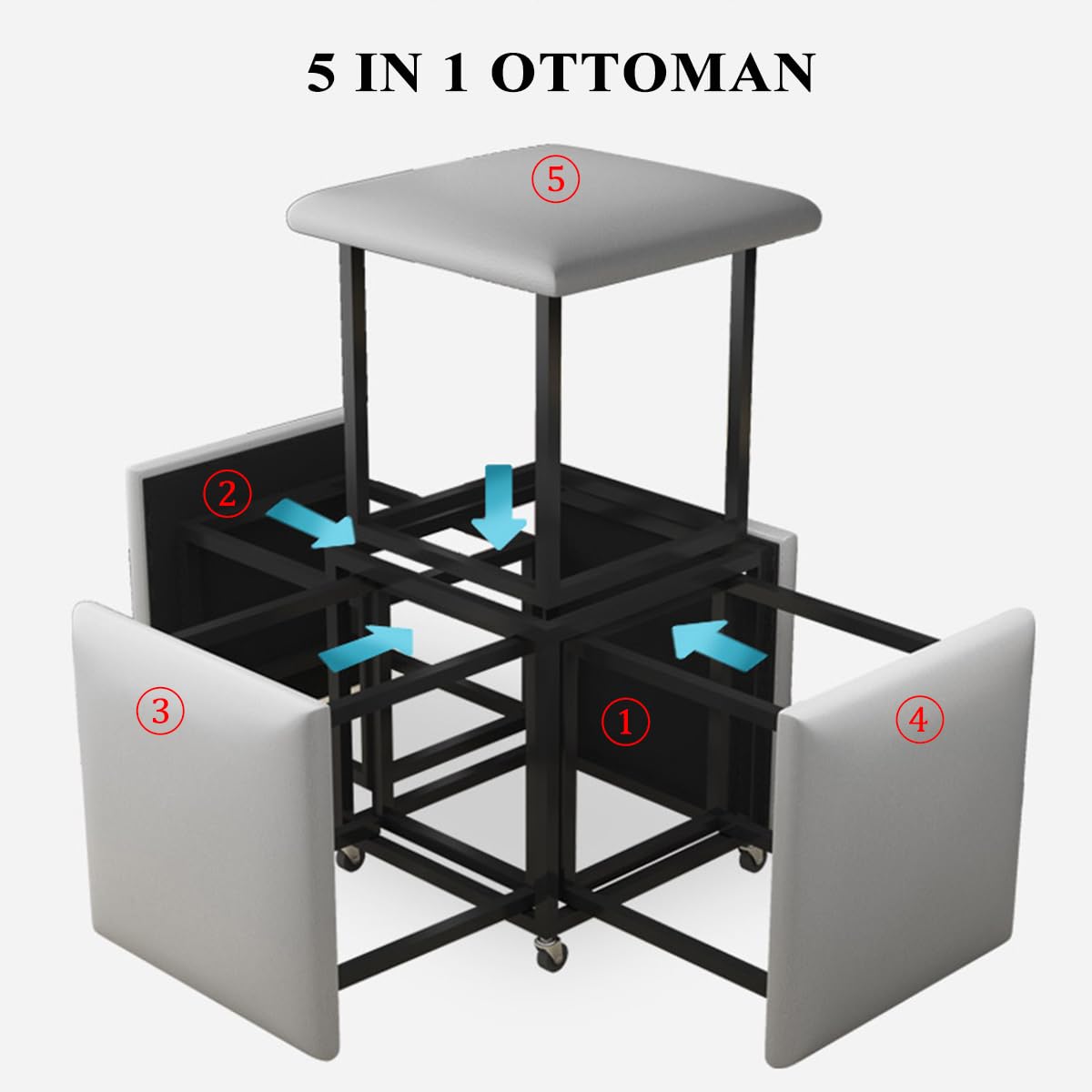 5-in-1 Nesting Pouf Ottoman Set with Metal Frame