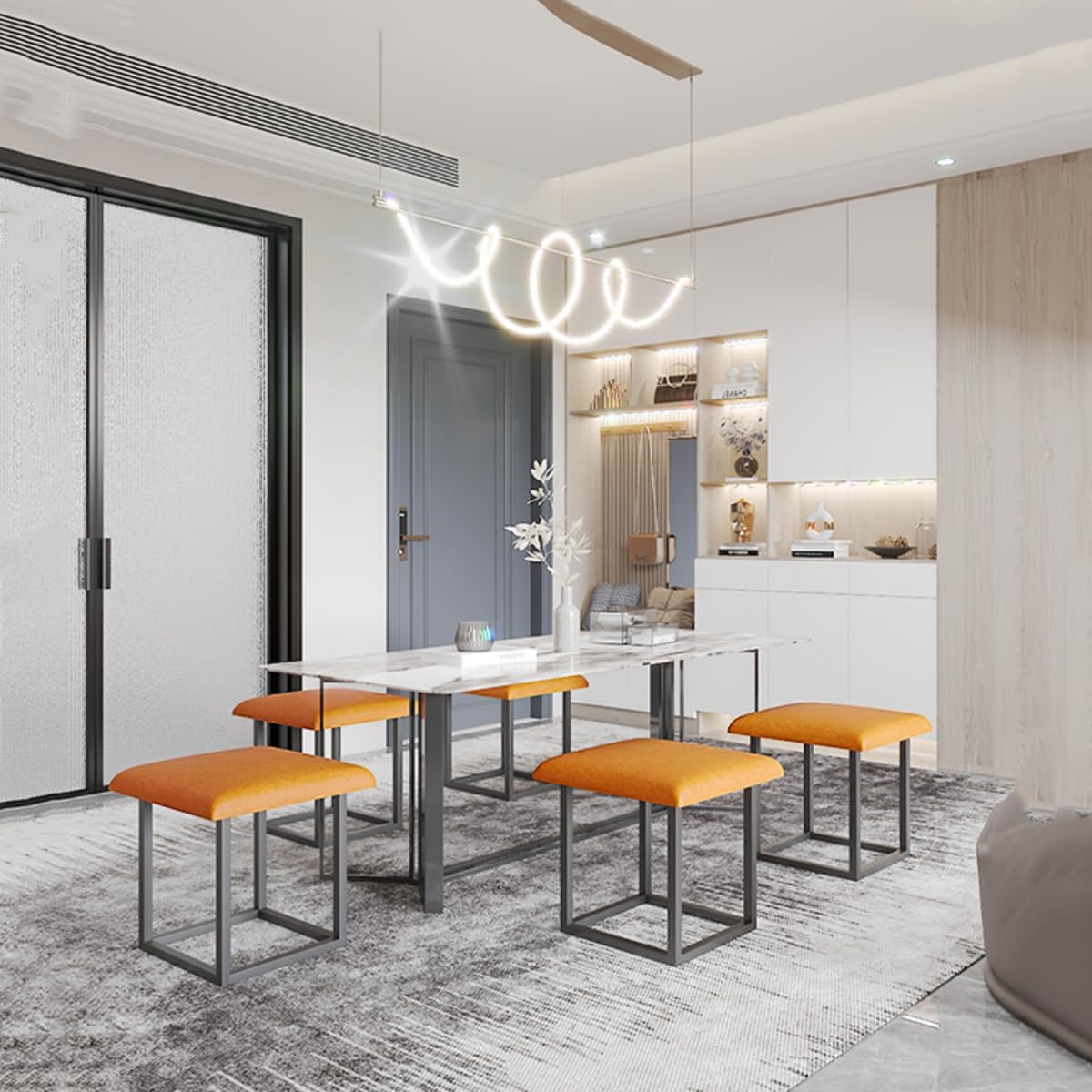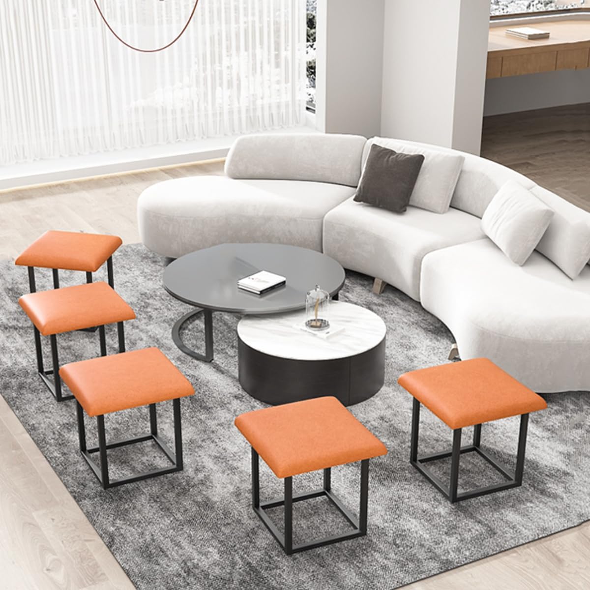 Perfect for creating additional seating in living rooms, providing comfortable footrests near couches, adding functional accent pieces to bedrooms, or offering flexible seating options in dining areas. The nesting design allows you to use all five pieces separately or stack them together for compact storage.