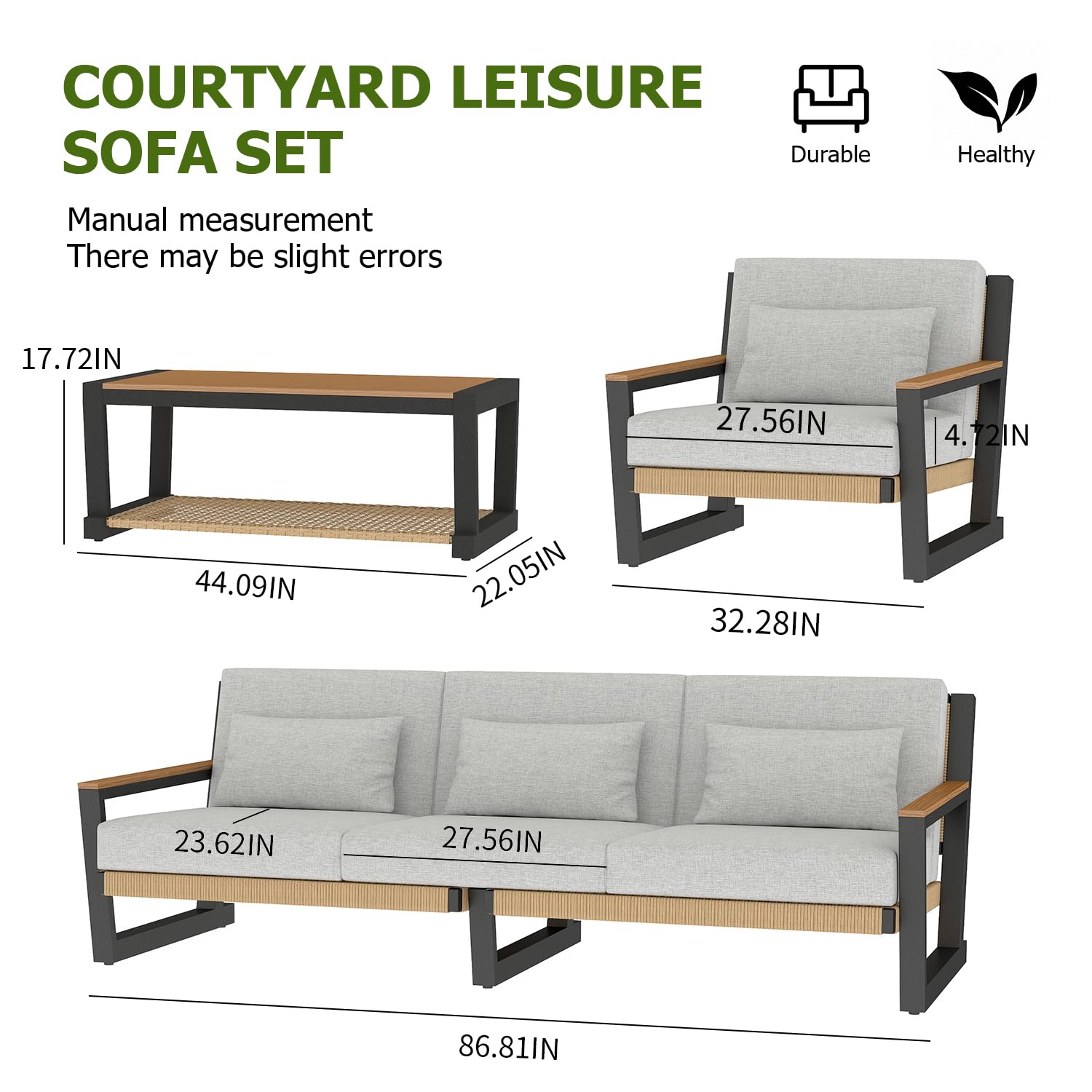 - Ergonomic Comfort: Wide armrests and seats with thick, removable cushions for easy cleaning and extended comfort