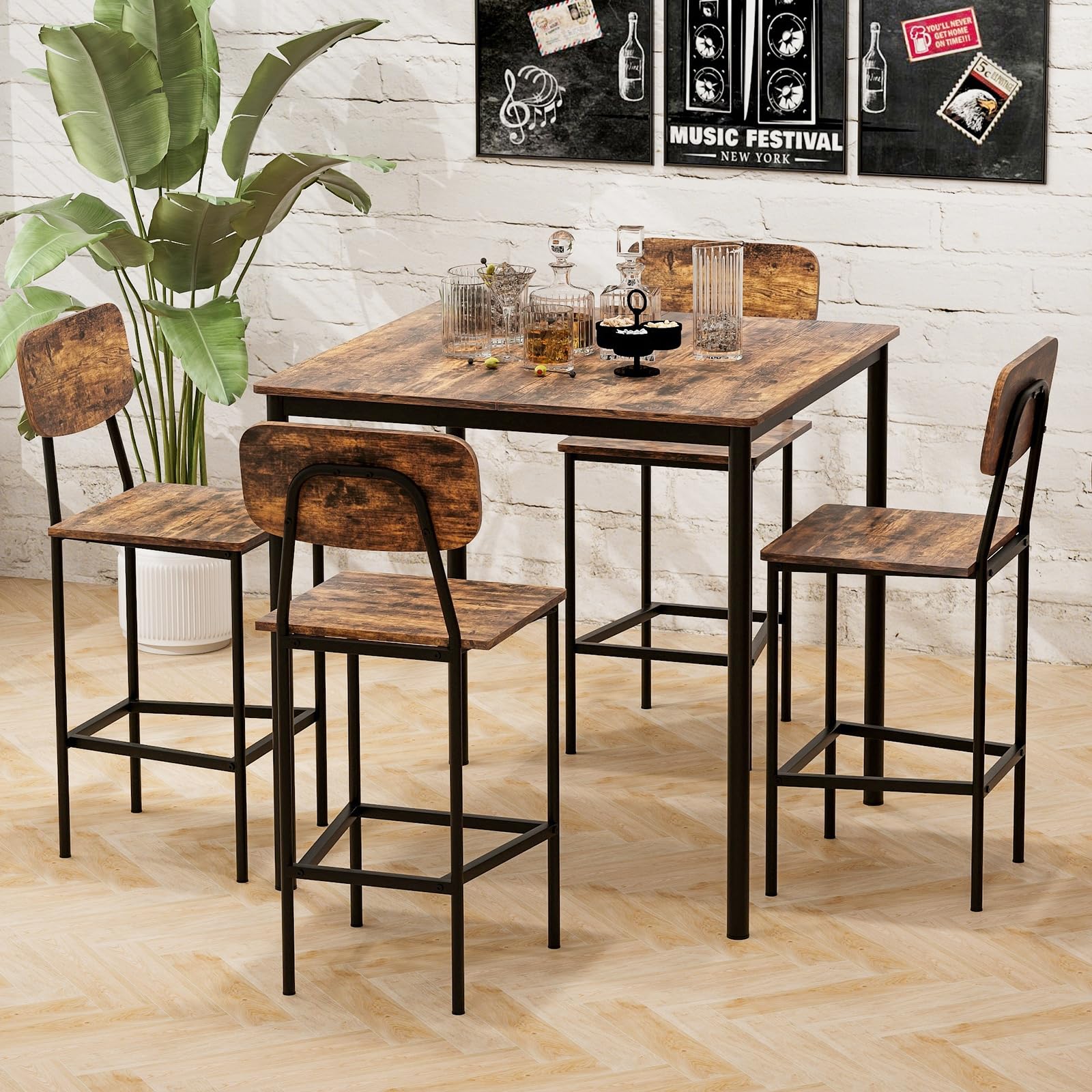 This 5-piece counter height dining set combines industrial style with practical functionality, perfect for small spaces and modern homes. The set includes one counter-height table and four matching bar stools with ergonomic backrests.