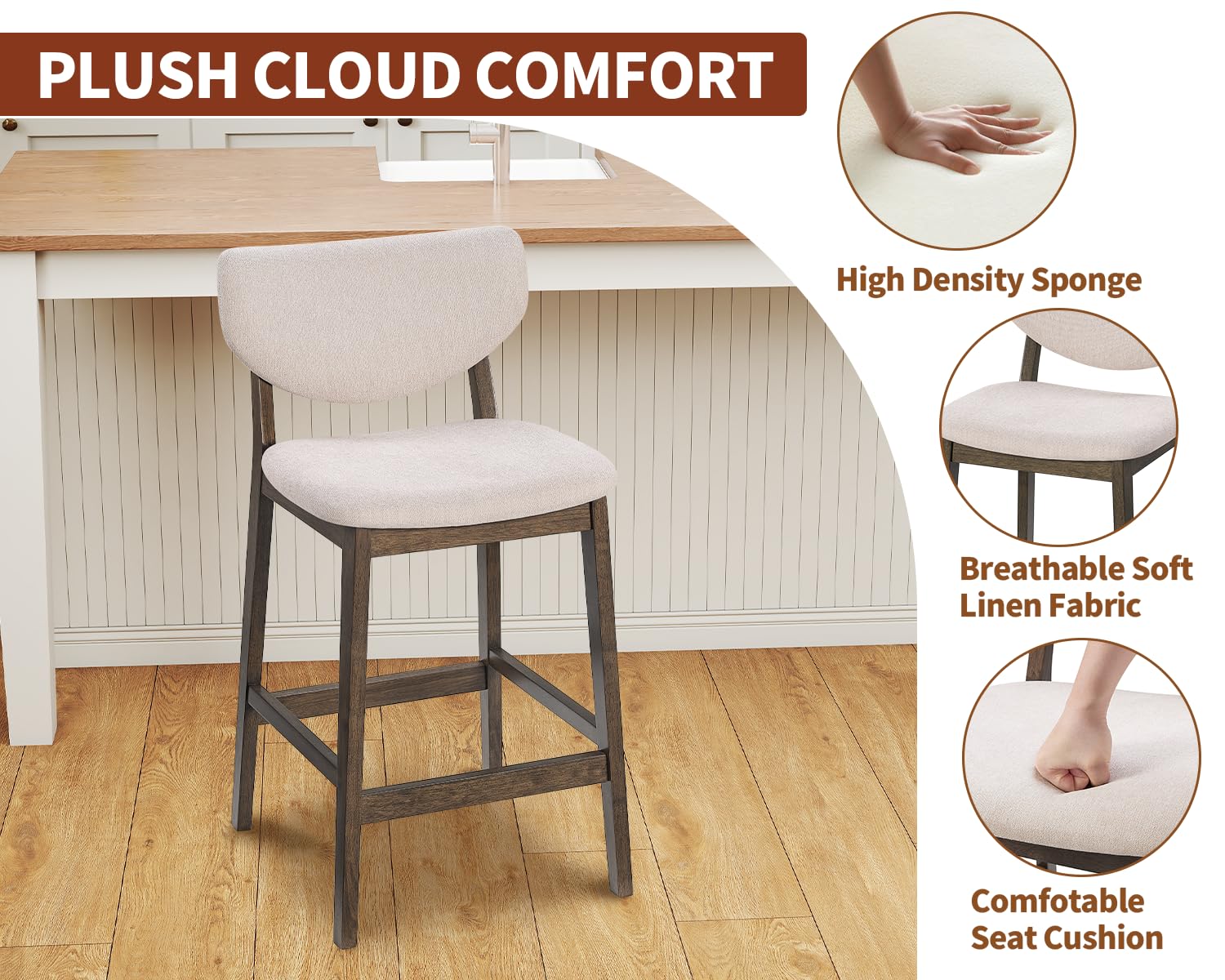 Transform your dining space with this elegant mid-century modern counter height dining set. This complete 5-piece set includes one counter height table and four upholstered bar stools with supportive backs, perfect for creating a stylish and functional dining area in your kitchen, dining room, or pub space.