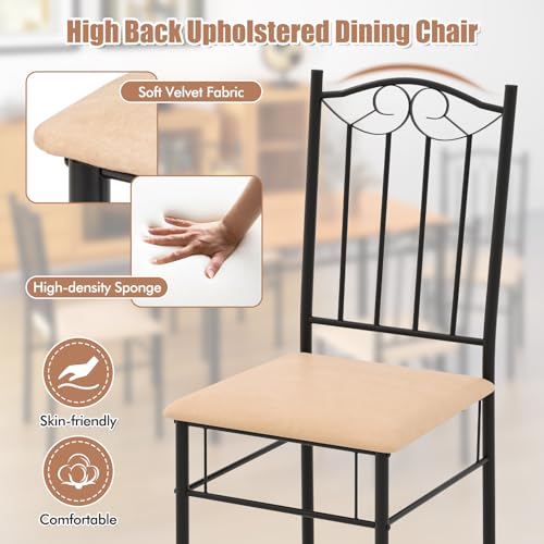 This modern 5-piece dining set combines style and functionality, perfect for small apartments, kitchens, and dining rooms. The set includes one rectangular dining table and four upholstered chairs with ergonomic high backs for maximum comfort.