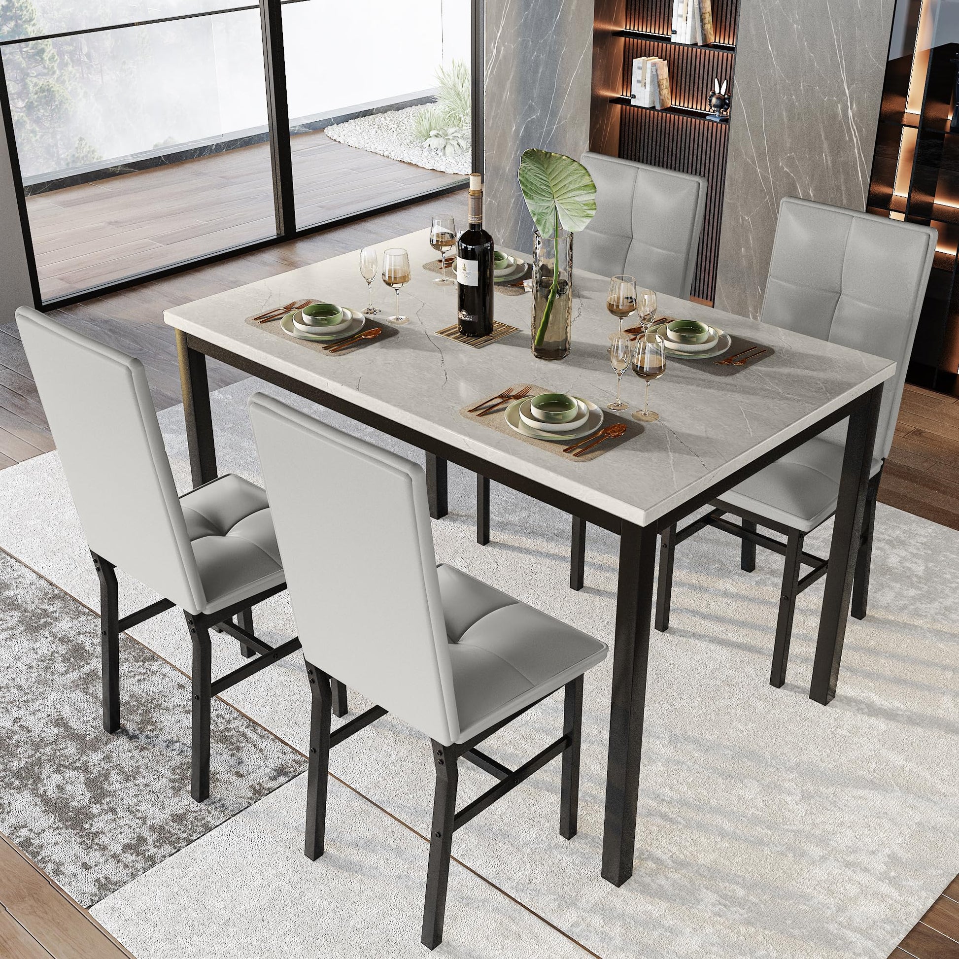 5-Piece Faux Marble Dining Table Set with 4 Chairs