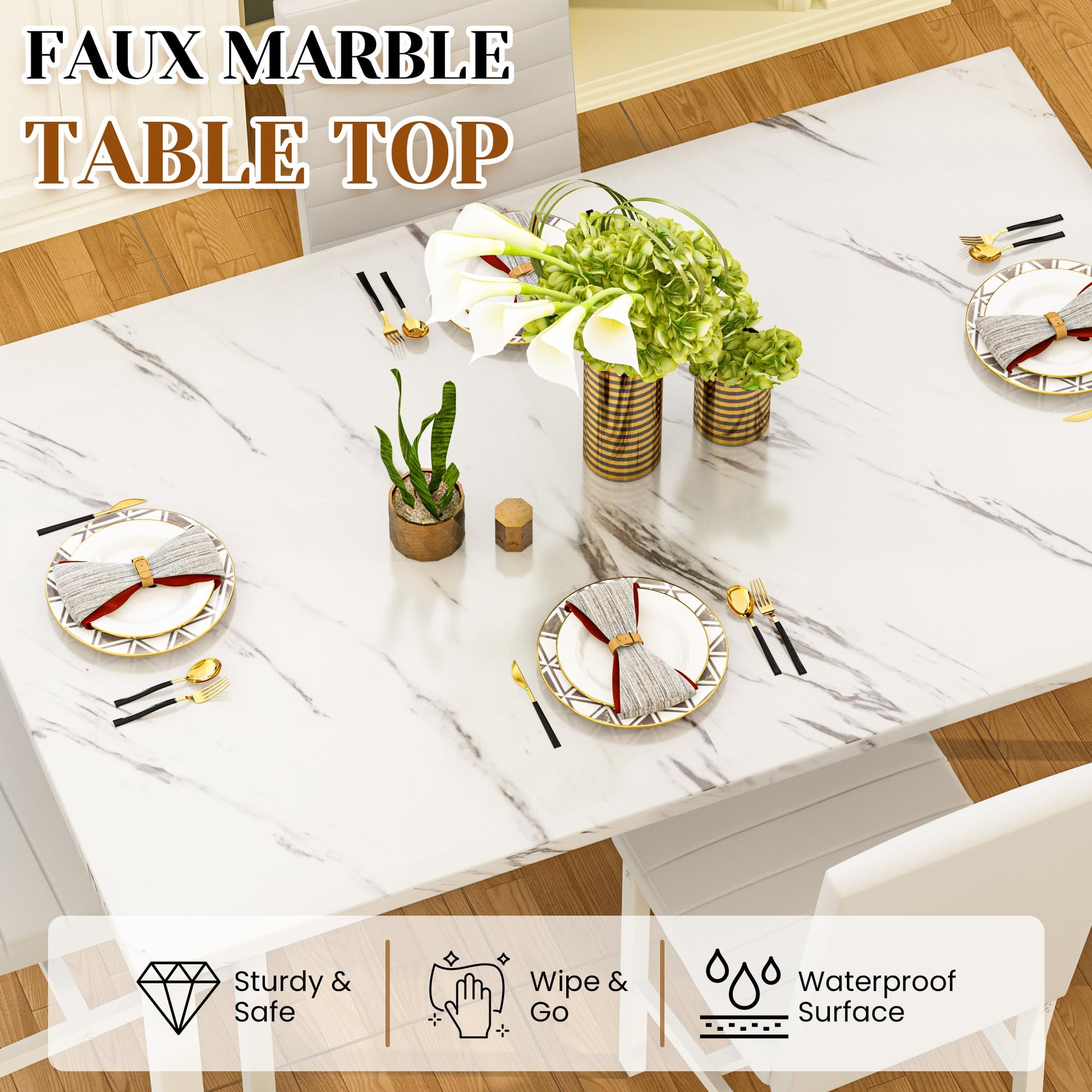 5-Piece Faux Marble Dining Table Set with 4 Upholstered Chairs