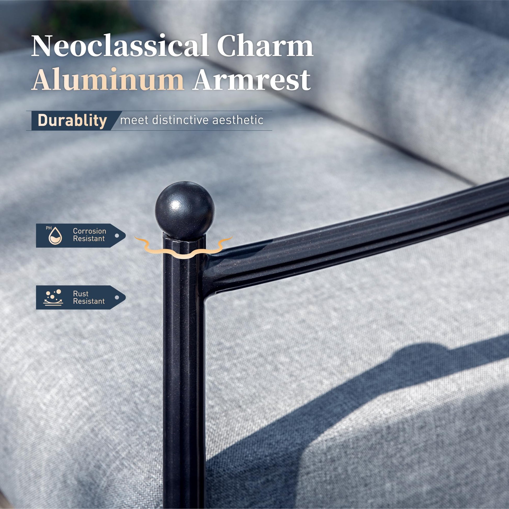 | Material | Metal frame, Aluminum armrests, High-density foam cushions |