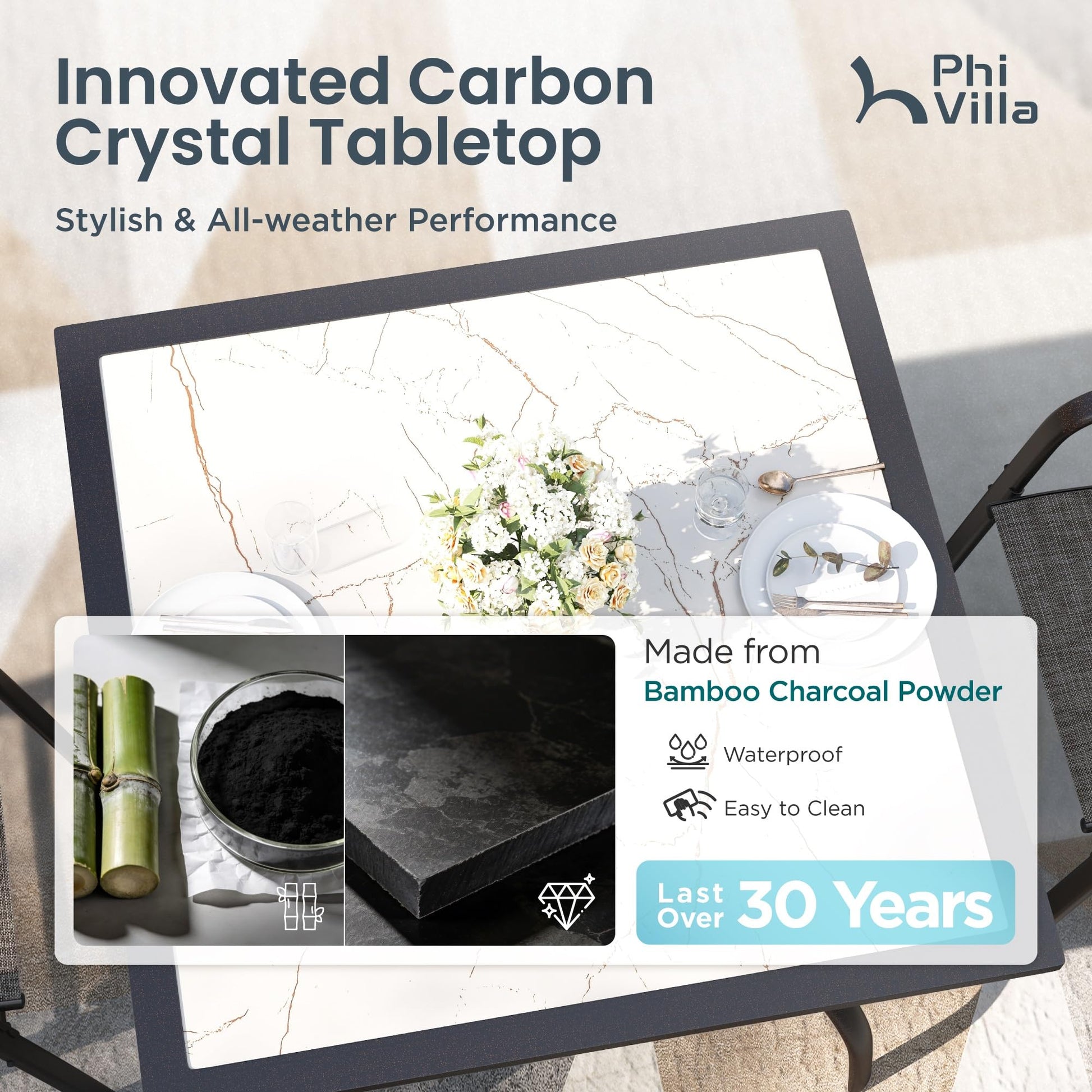 - Unique Carbon Crystal Tabletop: Luxurious marble texture with excellent UV resistance, oxidation protection, and easy maintenance