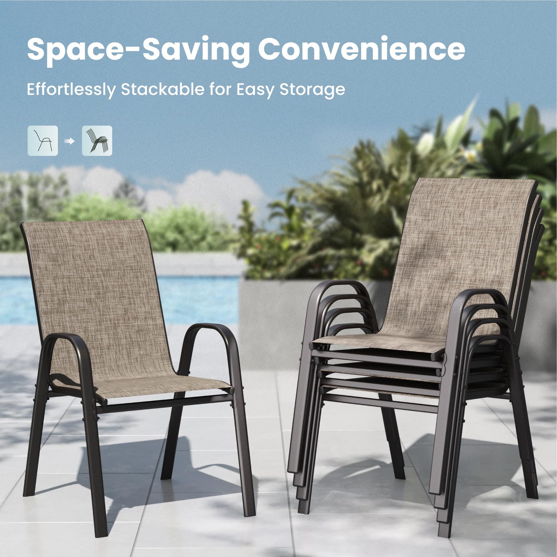 - Space-Saving Design: Stackable chairs allow for easy storage when not in use, ideal for compact outdoor spaces