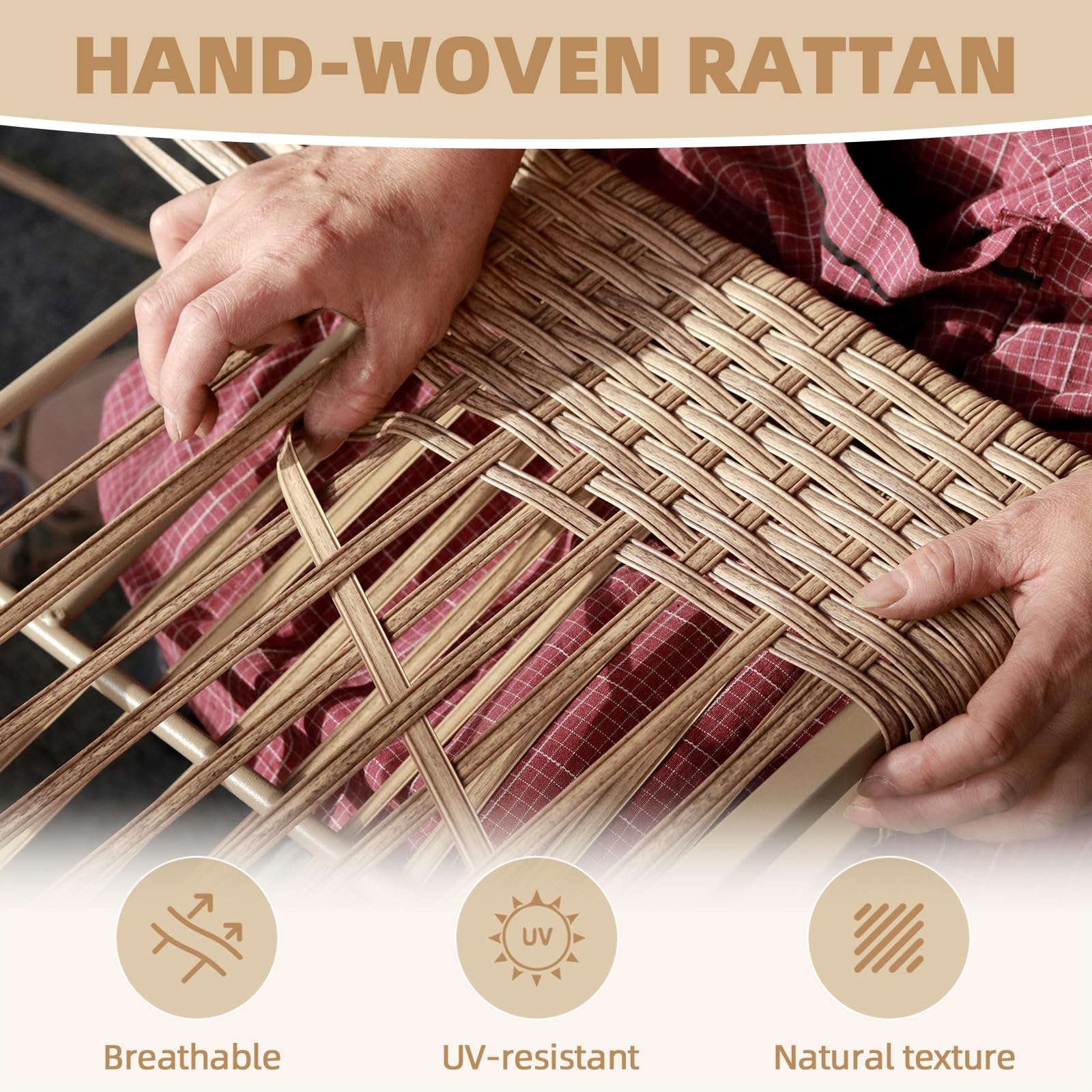 - Thick, all-weather cushions with anti-slip design