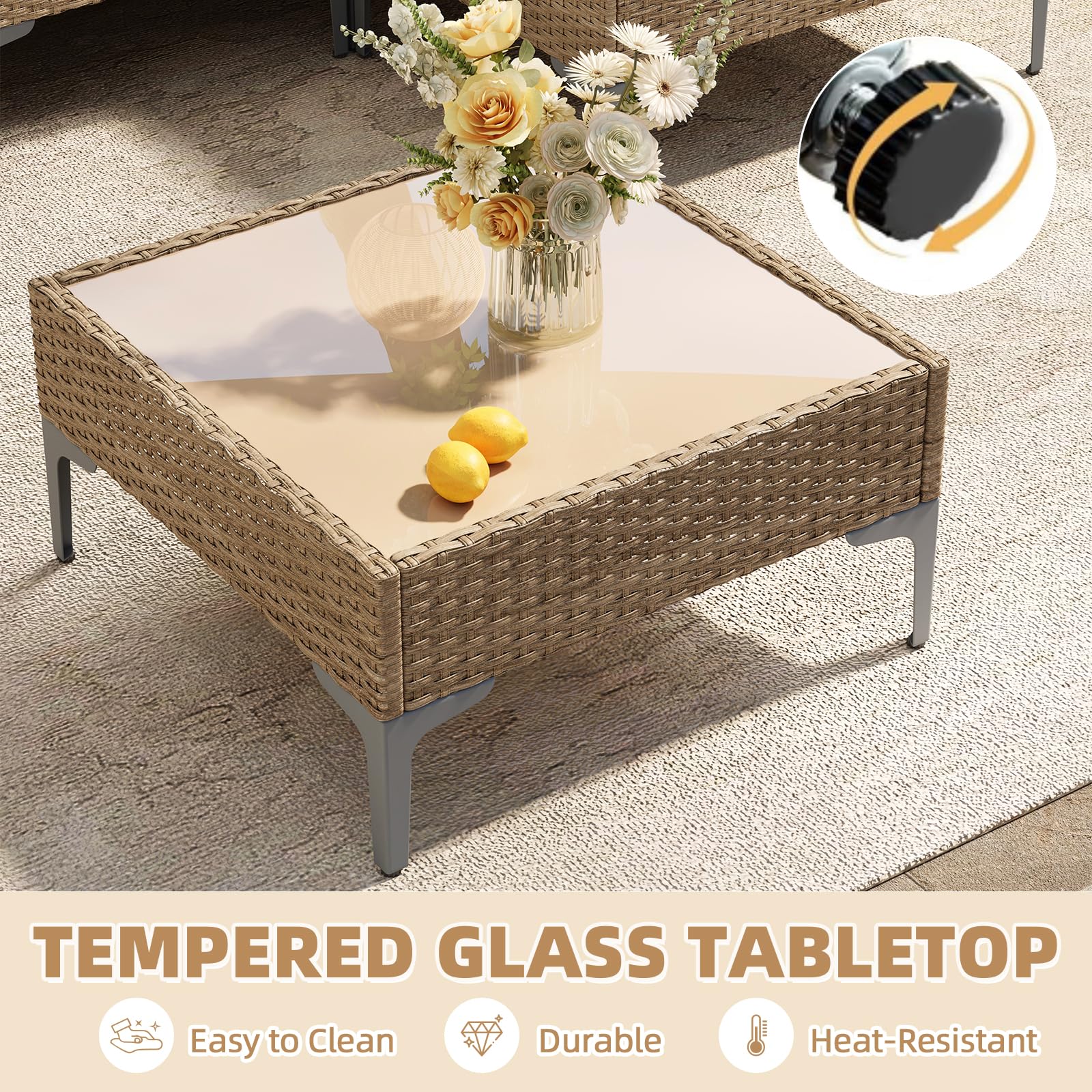 Transform your outdoor space with this complete patio furniture set featuring a sectional sofa and coffee table. Designed for durability and comfort, this set includes anti-slip, thick all-weather cushions perfect for entertaining guests or relaxing in your backyard.