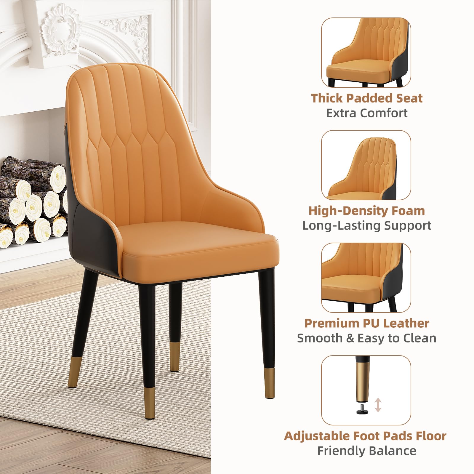 - Four ergonomic PU leather chairs with comfortable seating