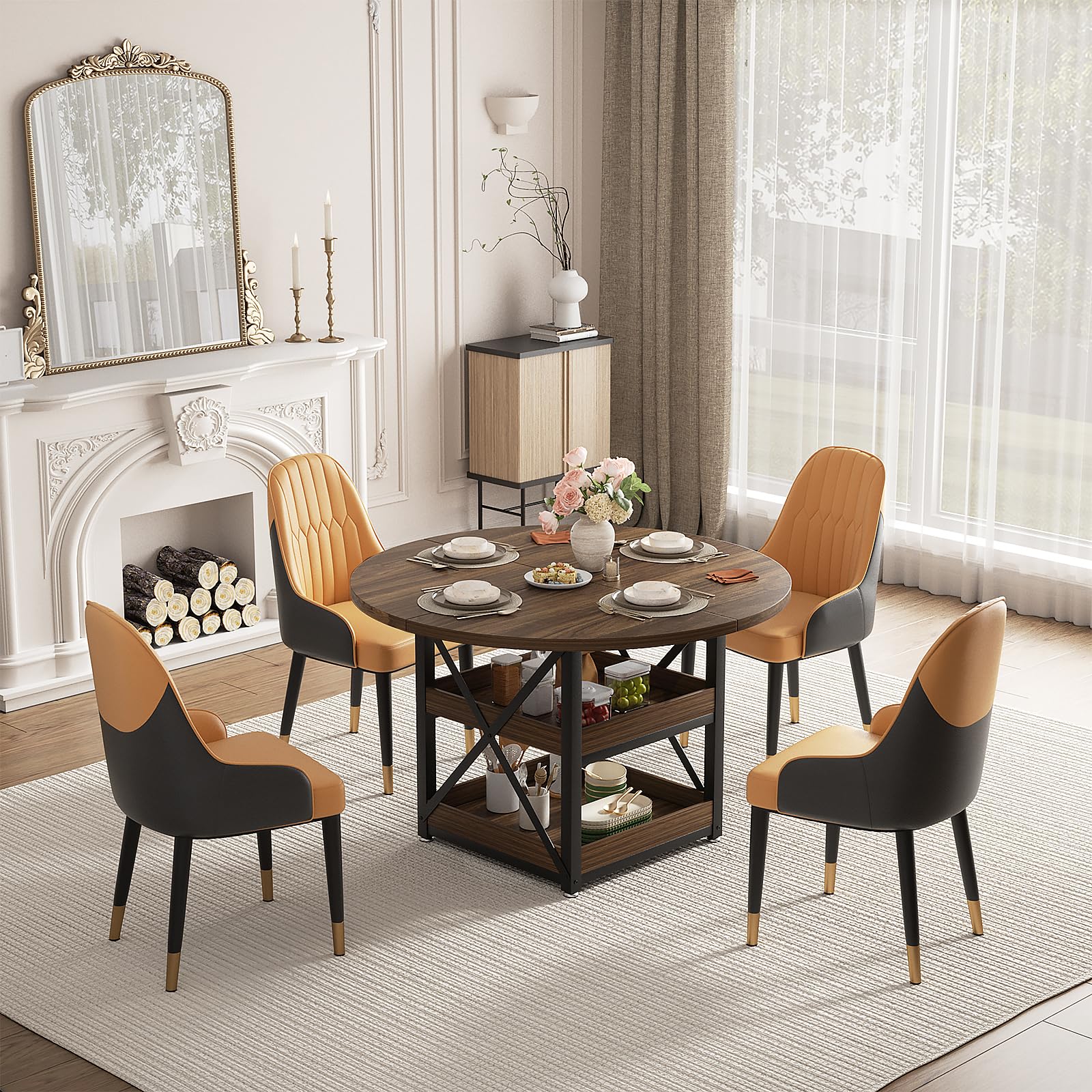 Transform your dining space with this elegant and functional round dining table set. Designed for compact spaces, this complete dining solution includes one round table with built-in storage and four comfortable PU leather chairs.