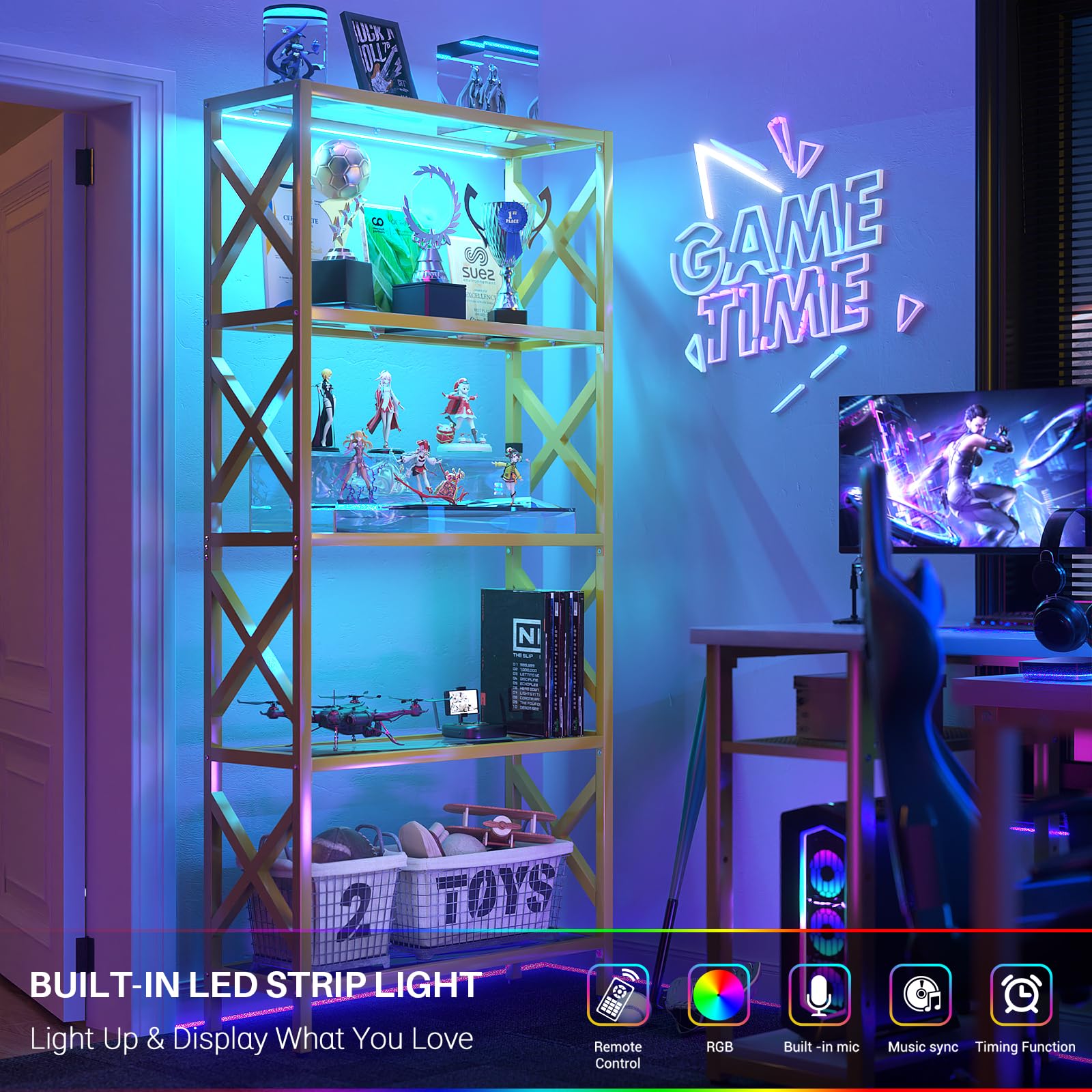 Showcase your books, collectibles, plants, and décor with this modern 5-tier bookshelf featuring built-in LED light strips that add a warm, contemporary glow to your space. Perfect for living rooms, bedrooms, gaming rooms, or offices, this display shelf transforms your items into a stunning visual centerpiece.