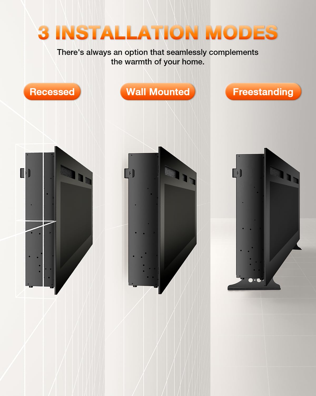 Experience the warmth and ambiance of a realistic flame electric fireplace heater. This versatile unit features both log set and crystal flame options, delivering 750-1500W of adjustable heating power with a convenient timer function. Designed for wall mounting or TV stand placement, it combines functionality with elegant design for your living room.
