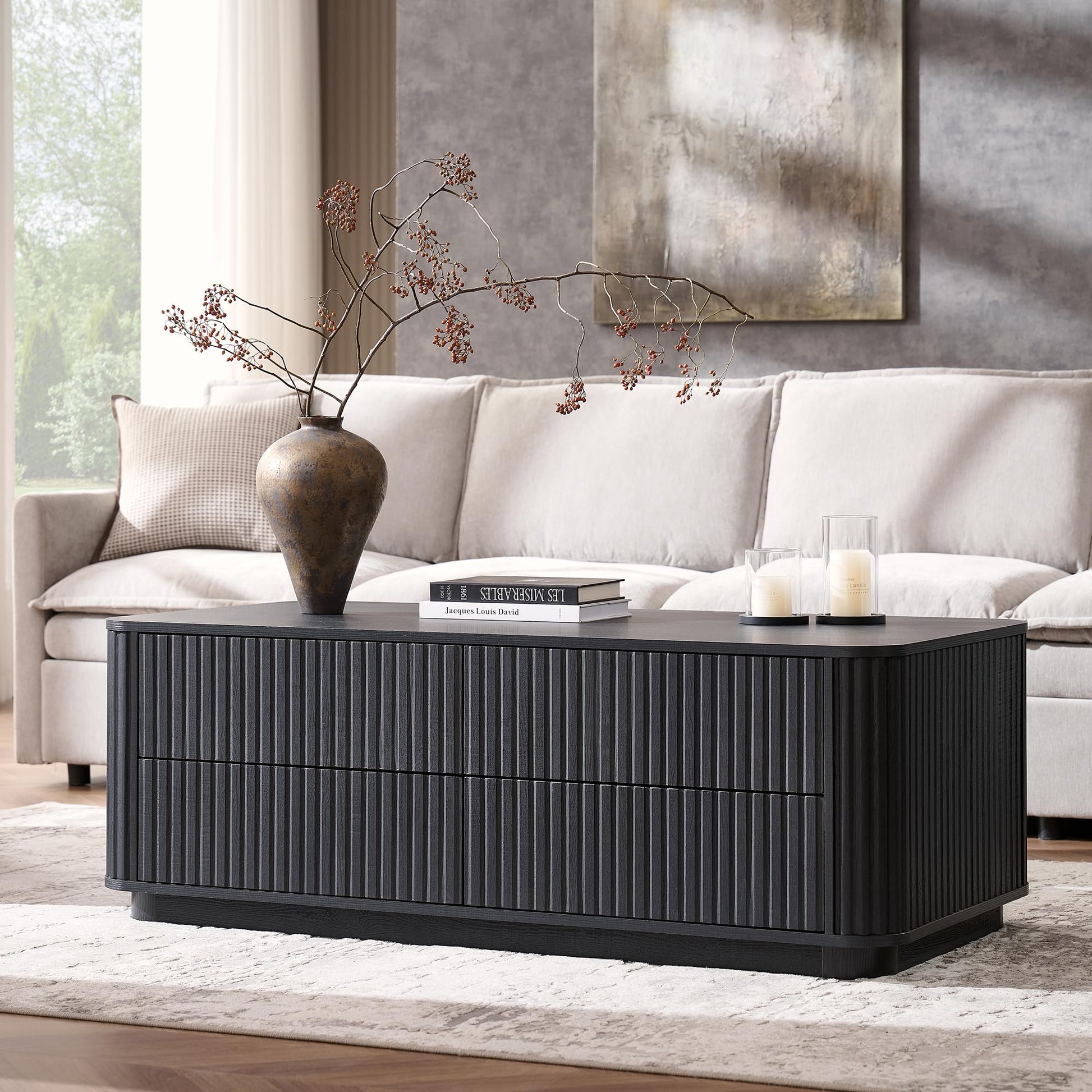 51" Fluted Coffee Table with 4 Drawers
