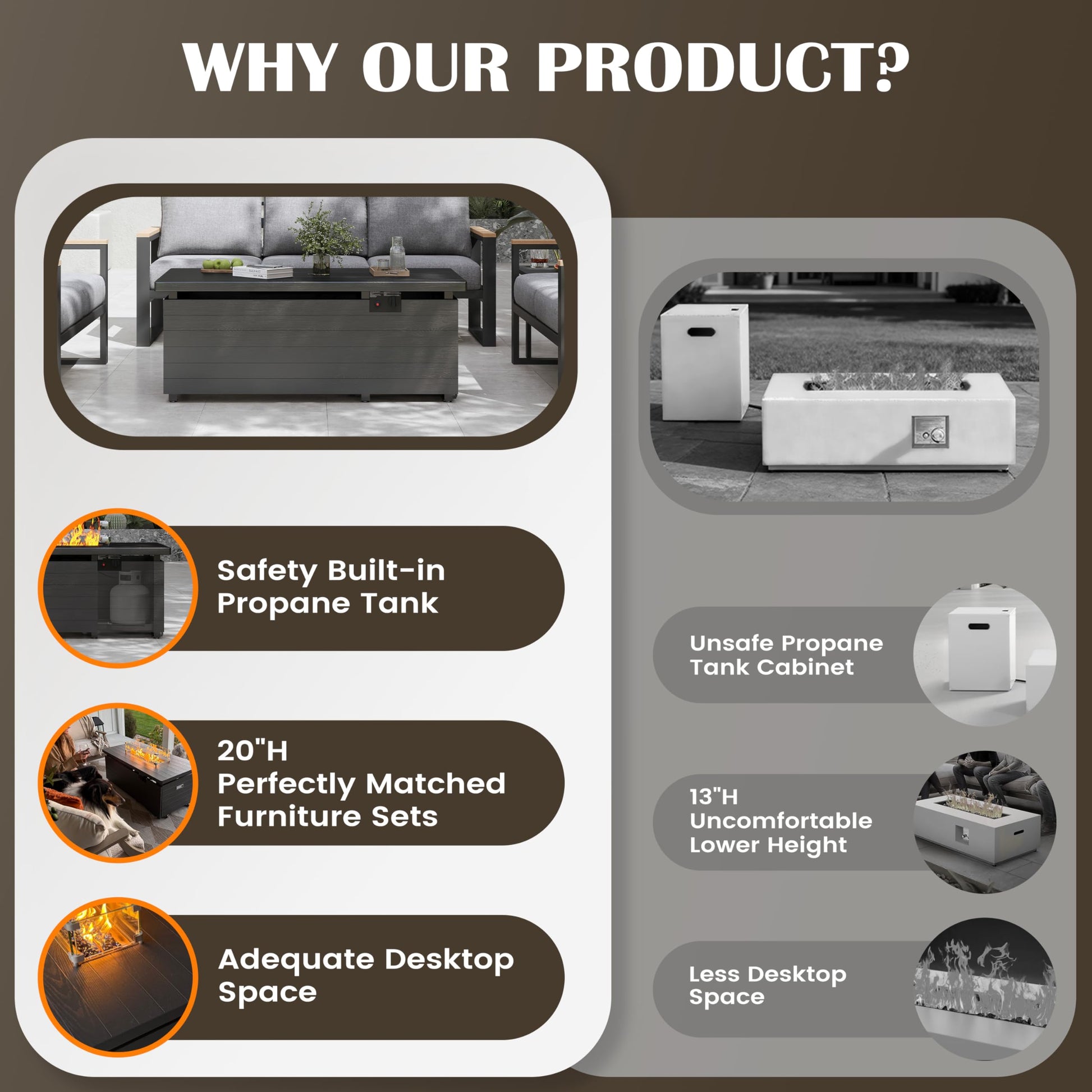 Transform your outdoor space with this premium rectangle propane fire pit table. Delivering powerful 50,000 BTU heating with CSA-certified safety, this versatile fire table creates the perfect ambiance for entertaining or relaxing outdoors.