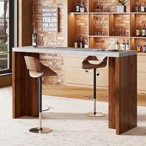 Ideal for kitchen dining areas, living rooms, balconies, or basement entertainment spaces, this versatile bar table comfortably accommodates 4-6 people. The sleek gray and walnut finish adds a sophisticated touch to any interior décor.
