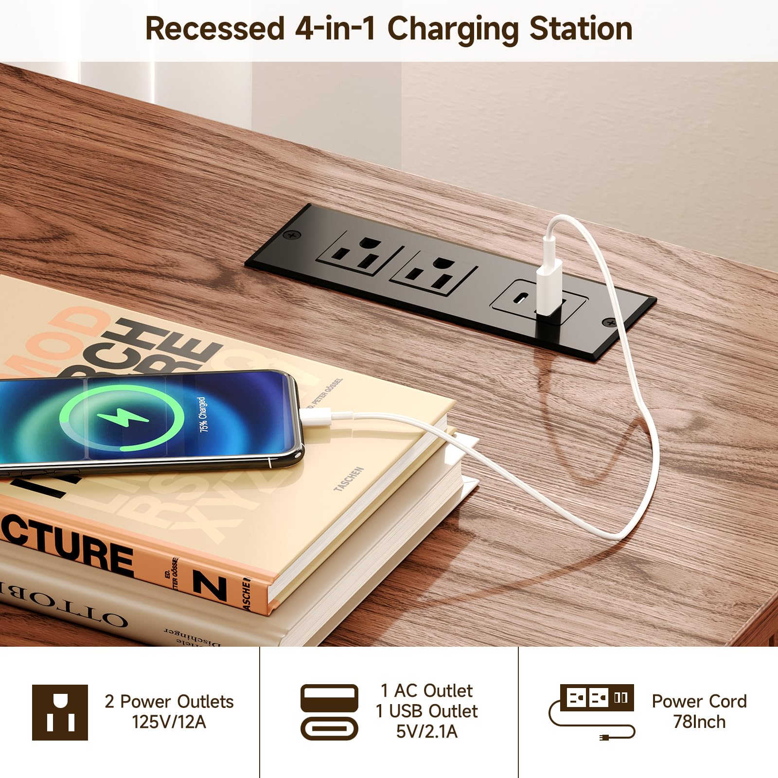 This modern home office desk combines functionality with mid-century design aesthetics. Featuring a fluted texture finish and integrated charging station, this executive desk provides ample workspace for working, studying, and writing tasks.