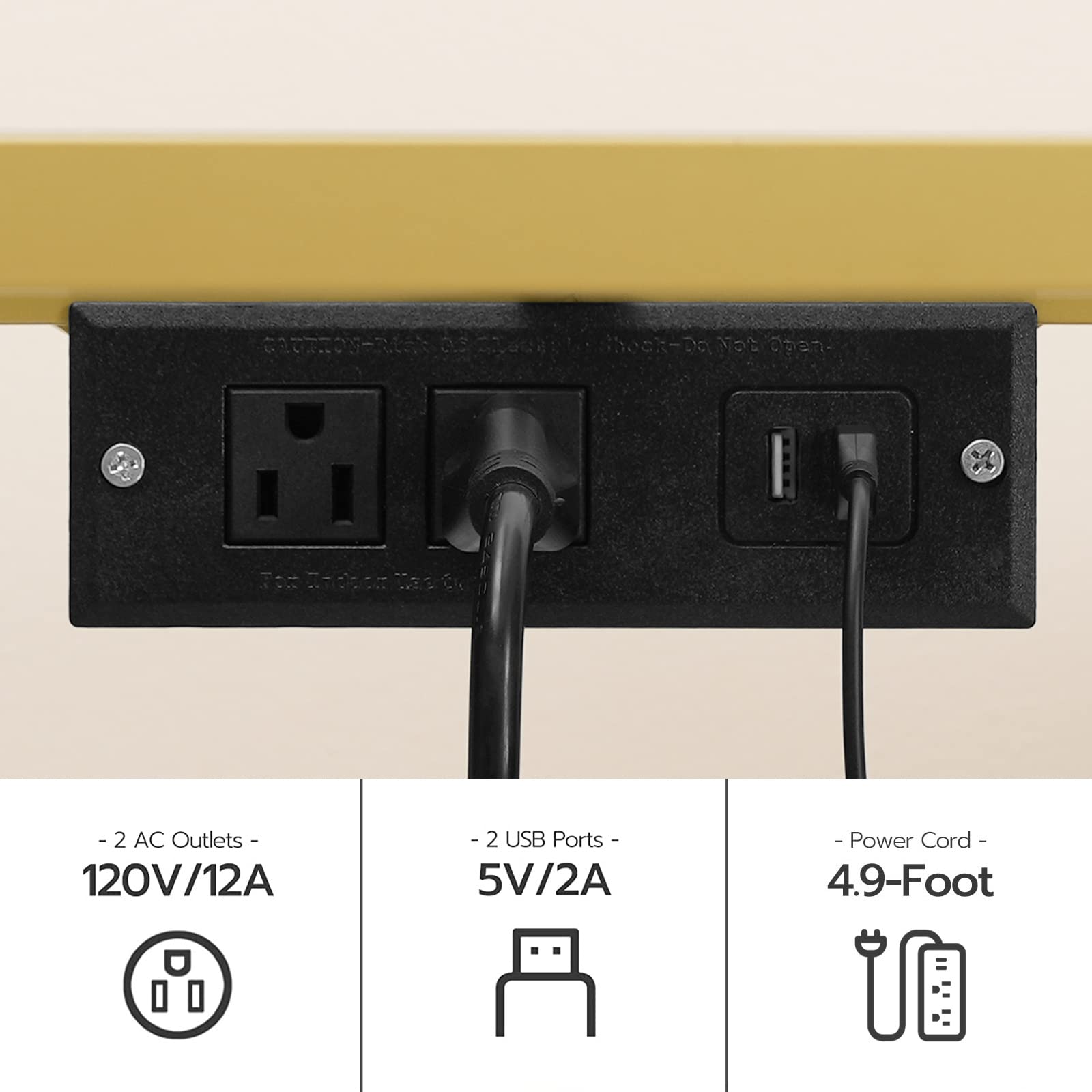 - Integrated power strip with 2 outlets, 2 USB ports, and 4.9-foot power cord for convenient device charging