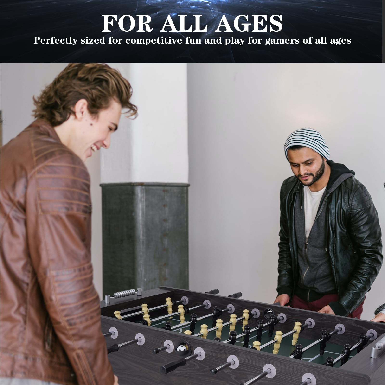 - PERFECT FOR VERSATILE APPLICATIONS: Our high-quality, full-size foosball table is the perfect addition to your game room, basement, office, or man cave, offering endless fun for family and friends with classic, competitive matches. This soccer game table can also be a perfect birthday, Christmas or New Year gift for your family, friends, or colleagues.