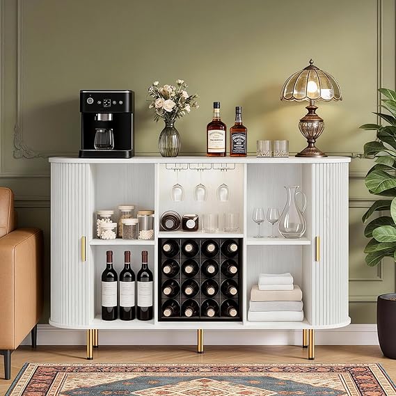 This multi-purpose cabinet works perfectly as a buffet sideboard, coffee bar station, storage unit, TV stand, or entryway console table. Ideal for dining rooms, living rooms, kitchens, and home bars.
