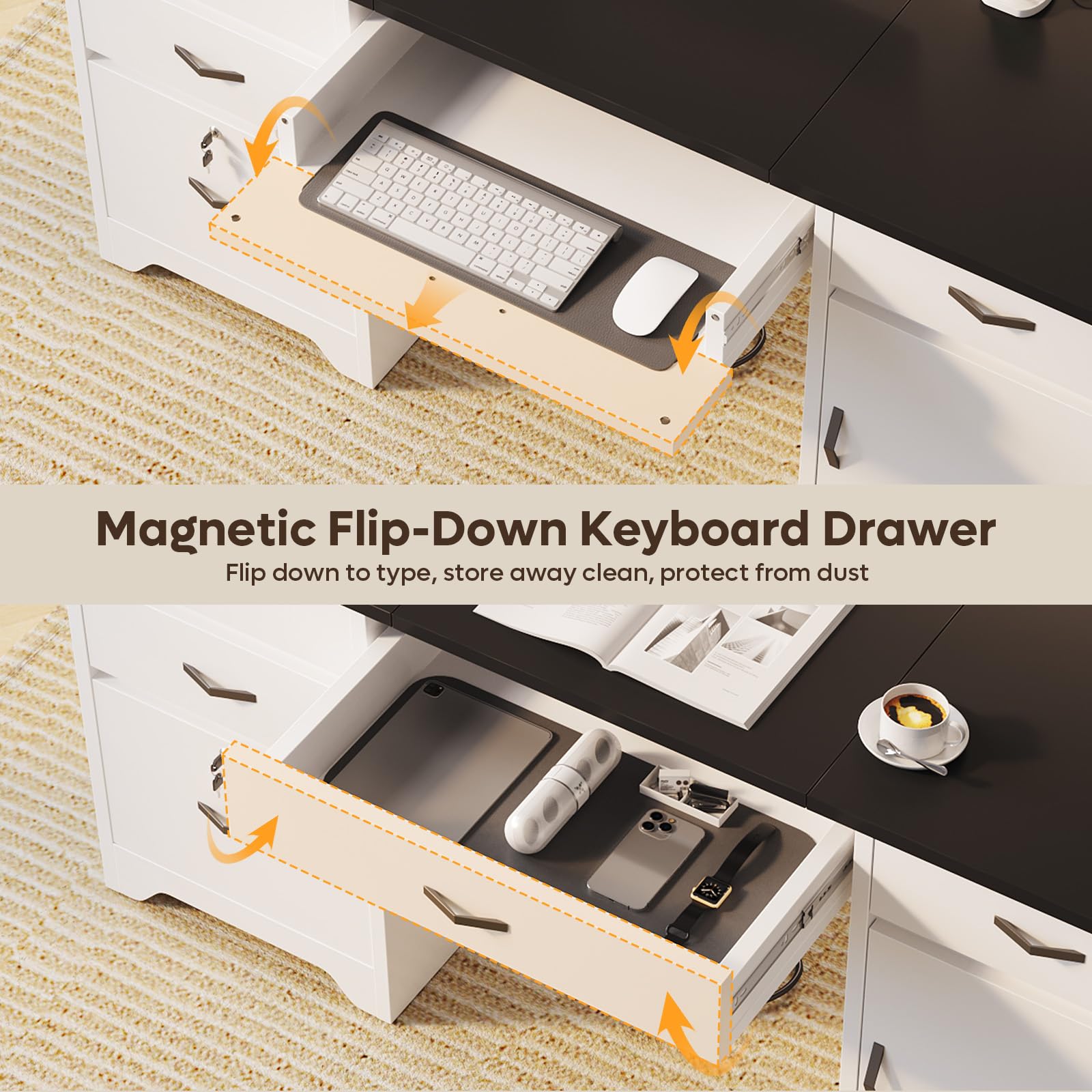 - Secure & Functional: A deeper drop-front keyboard drawer (upgraded, 4"/10cm deeper than previous version) doubles as extra storage or an ergonomic tray. The lockable file drawer includes adjustable rails for letter, A4, or legal folders—keeping sensitive documents safe and organized