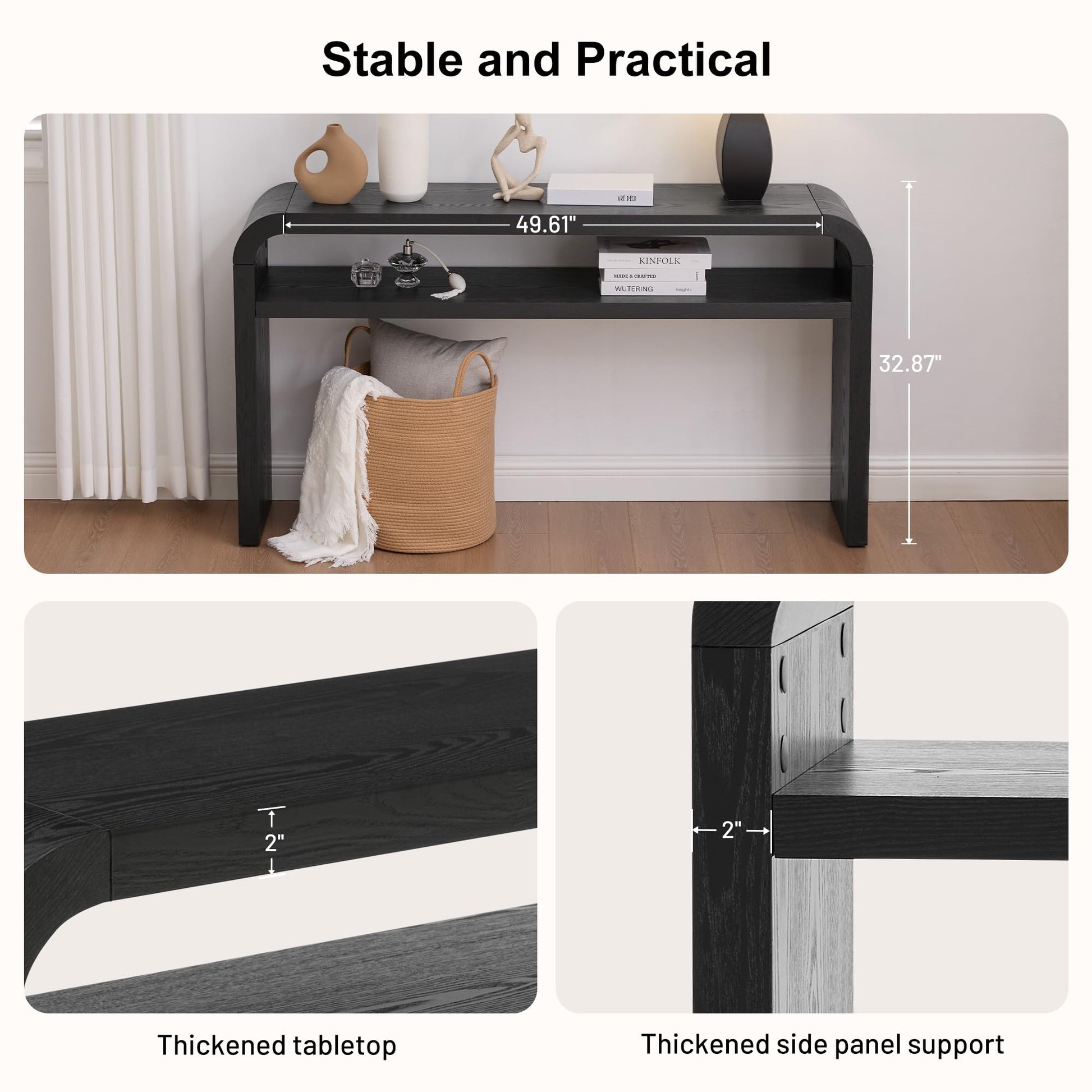 This extra-long dual-layer console table combines functionality with elegant design, perfect for narrow spaces in your home. Featuring a smooth waterfall edge design with rounded corners and a hollow leg construction, this versatile piece offers ample storage while maintaining a sleek, modern aesthetic.